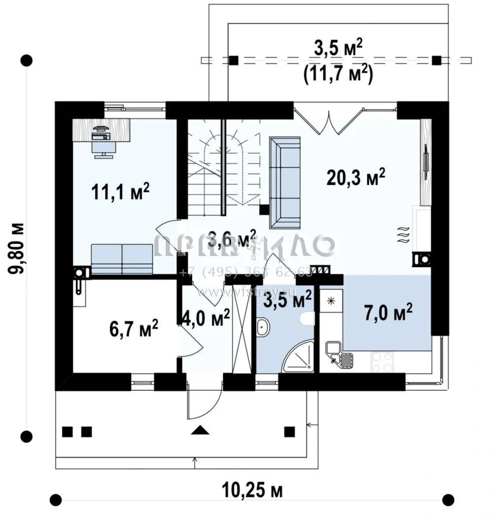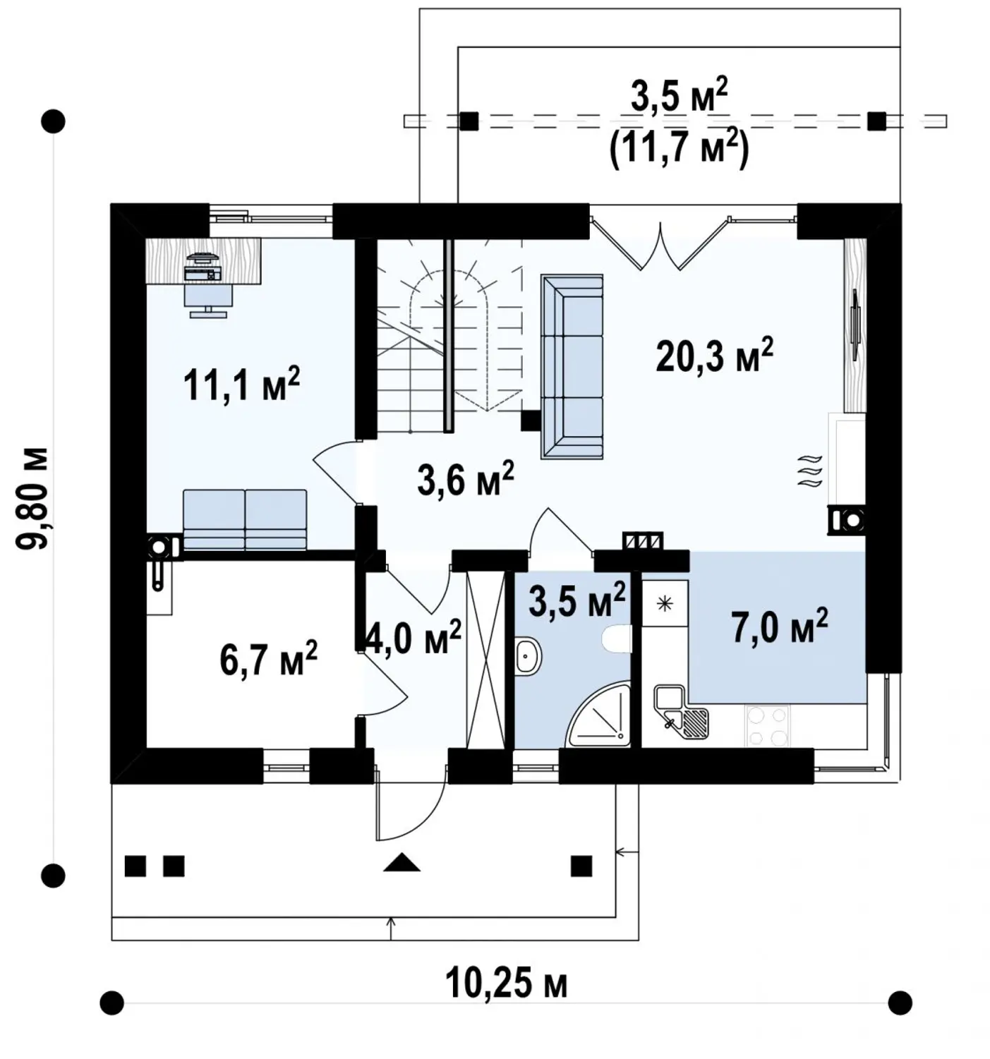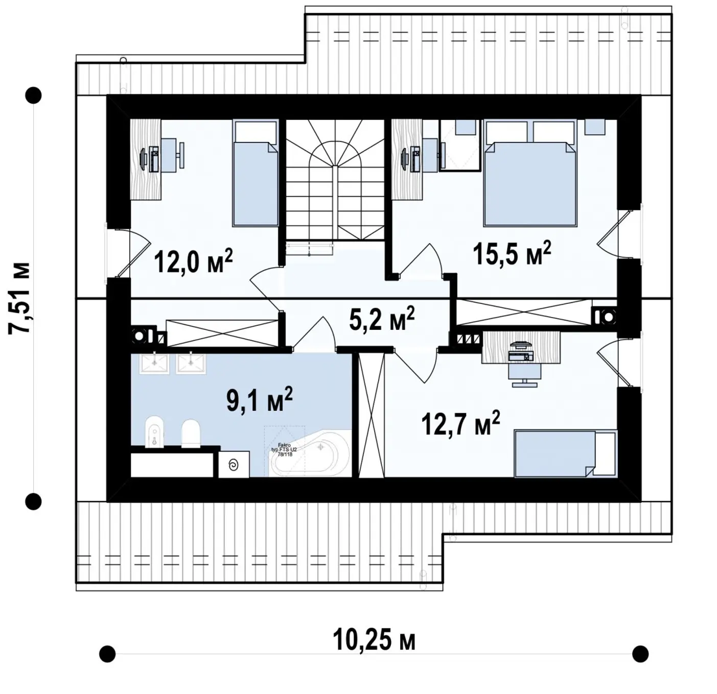 Проект небольшого одноэтажного дома с мансардой и летней террасой S3-112-12 (Z210 v1)