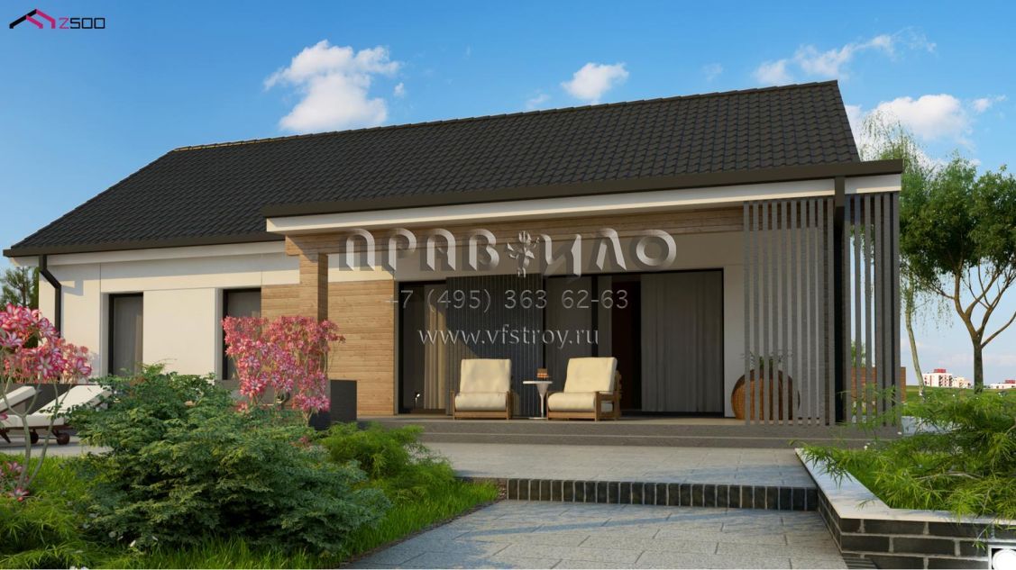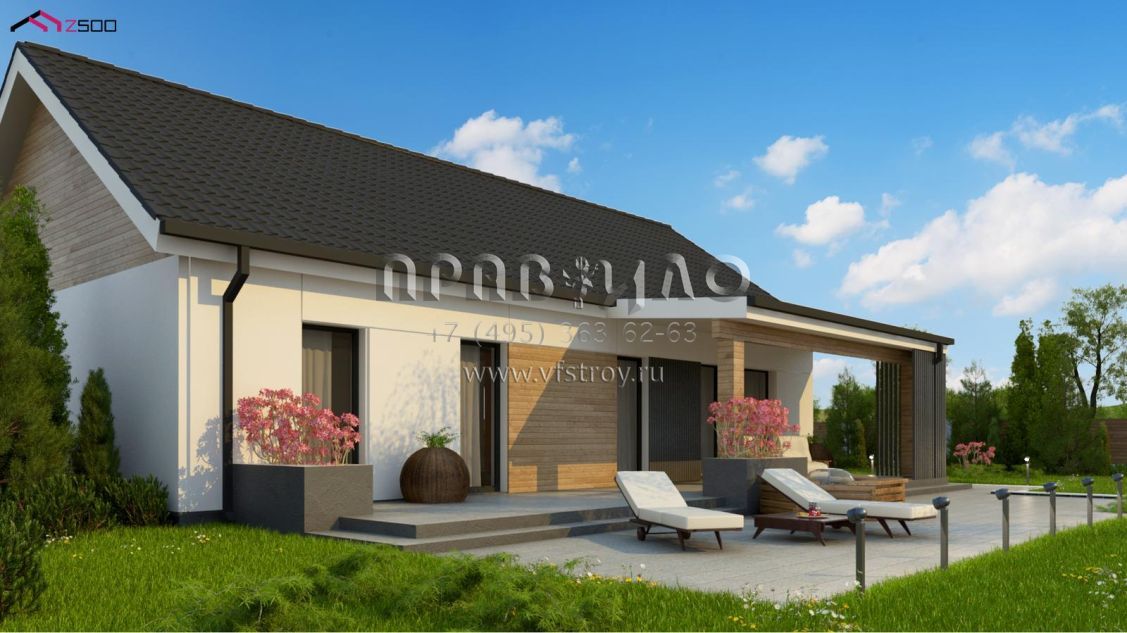 Проект комфортабельного современного дома с гостиной и тремя спальнями S3-112-2 (Z376 35 v1)