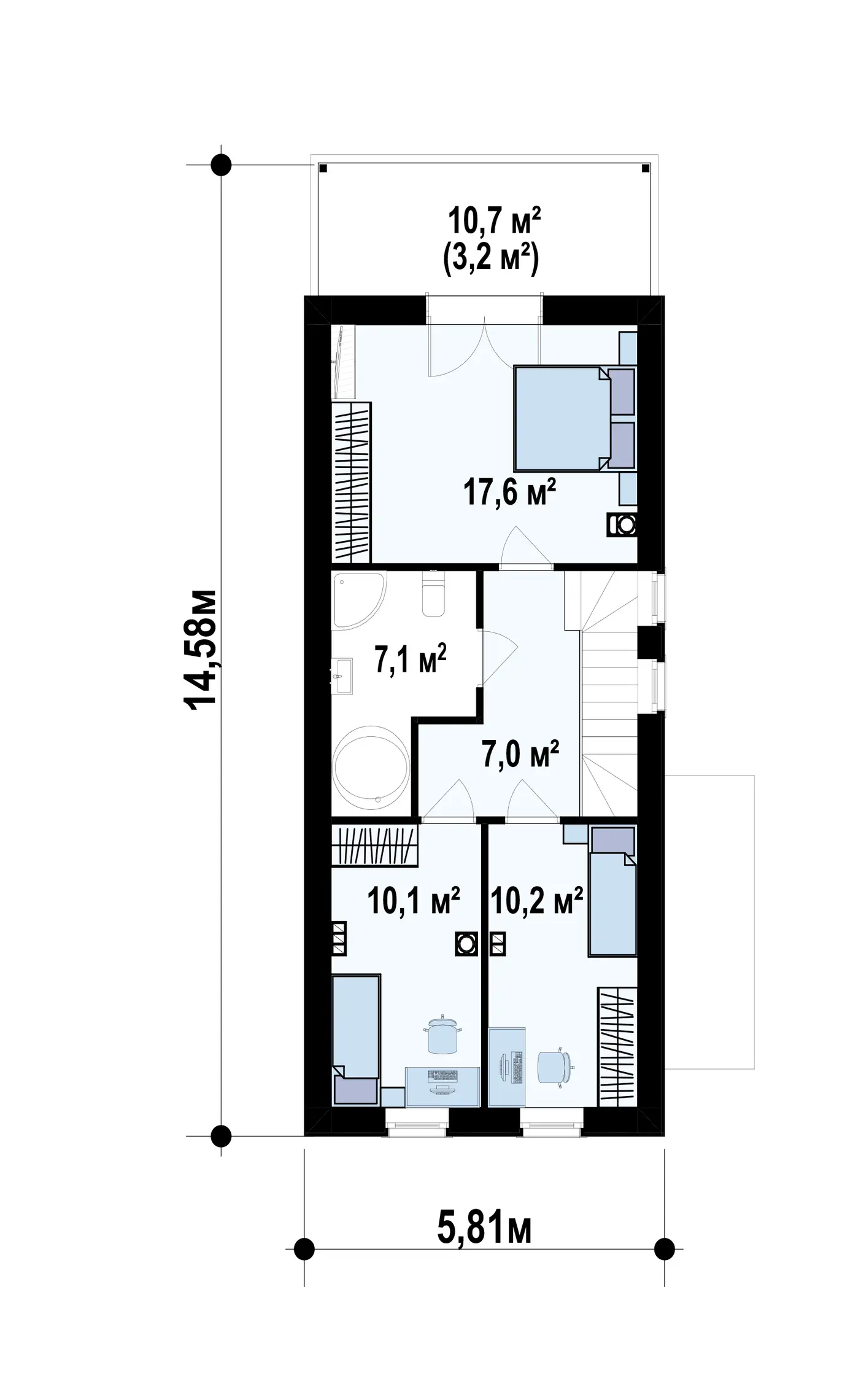 Проект загородного коттеджа для узкого участка S3-112-9 (Z25)