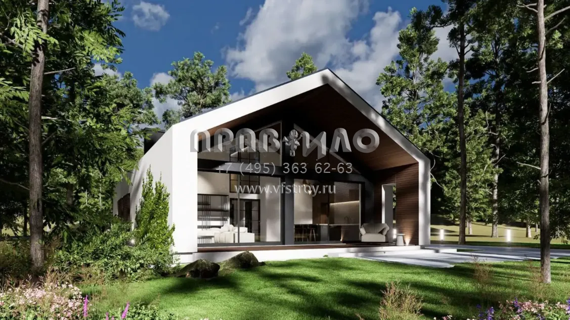 S3-114 (Z600 27). Перед вами – стильный одноэтажный барнхаус со вторым светом. Экстерьер дома сразу приковывает к себе взгляды – и неслучайно. Стиль барнхаус сегодня находится на пике своей популярности: его современные формы, красиво вписанный второй свет и внешняя «монолитность» делают этот архитектурный стиль настоящим бестселлером.