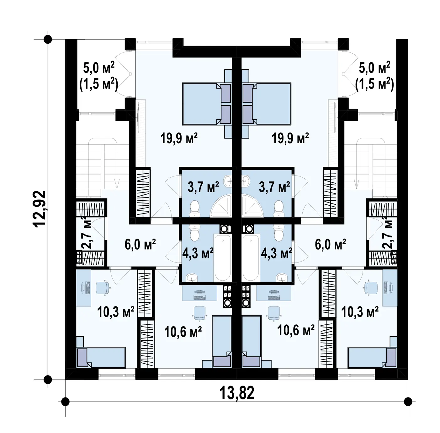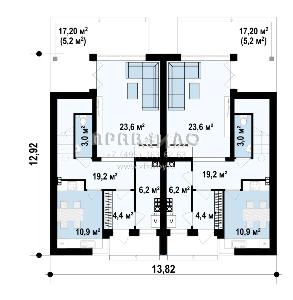 Проект таунхауса на два хозяина S3-118-1 (ZB7)