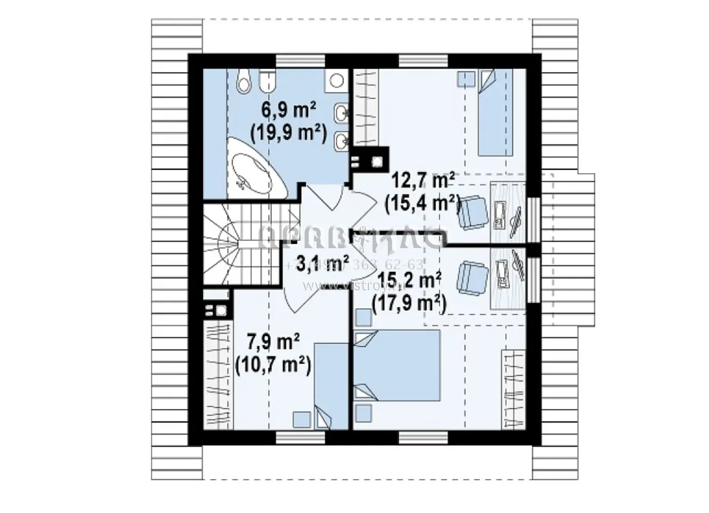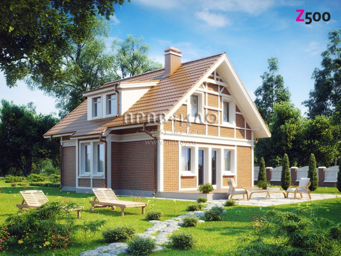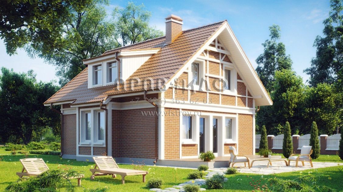 Проект одноэтажного мансардного дома с камином S3-119-2 (Z44)