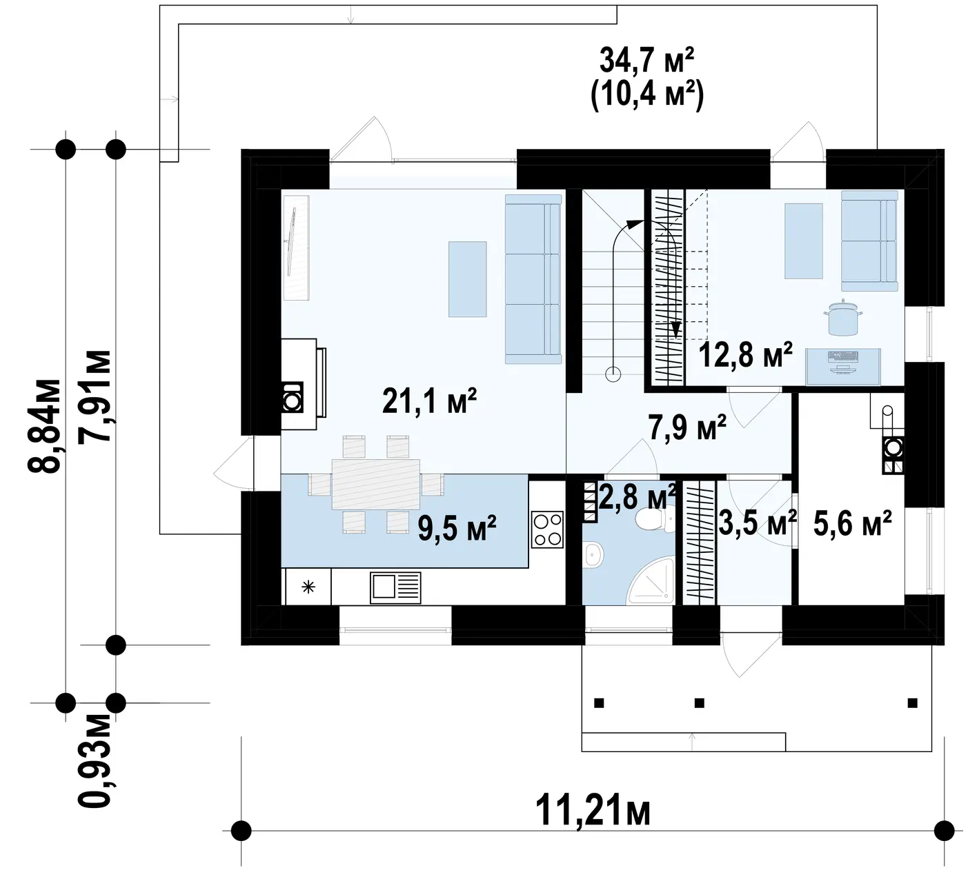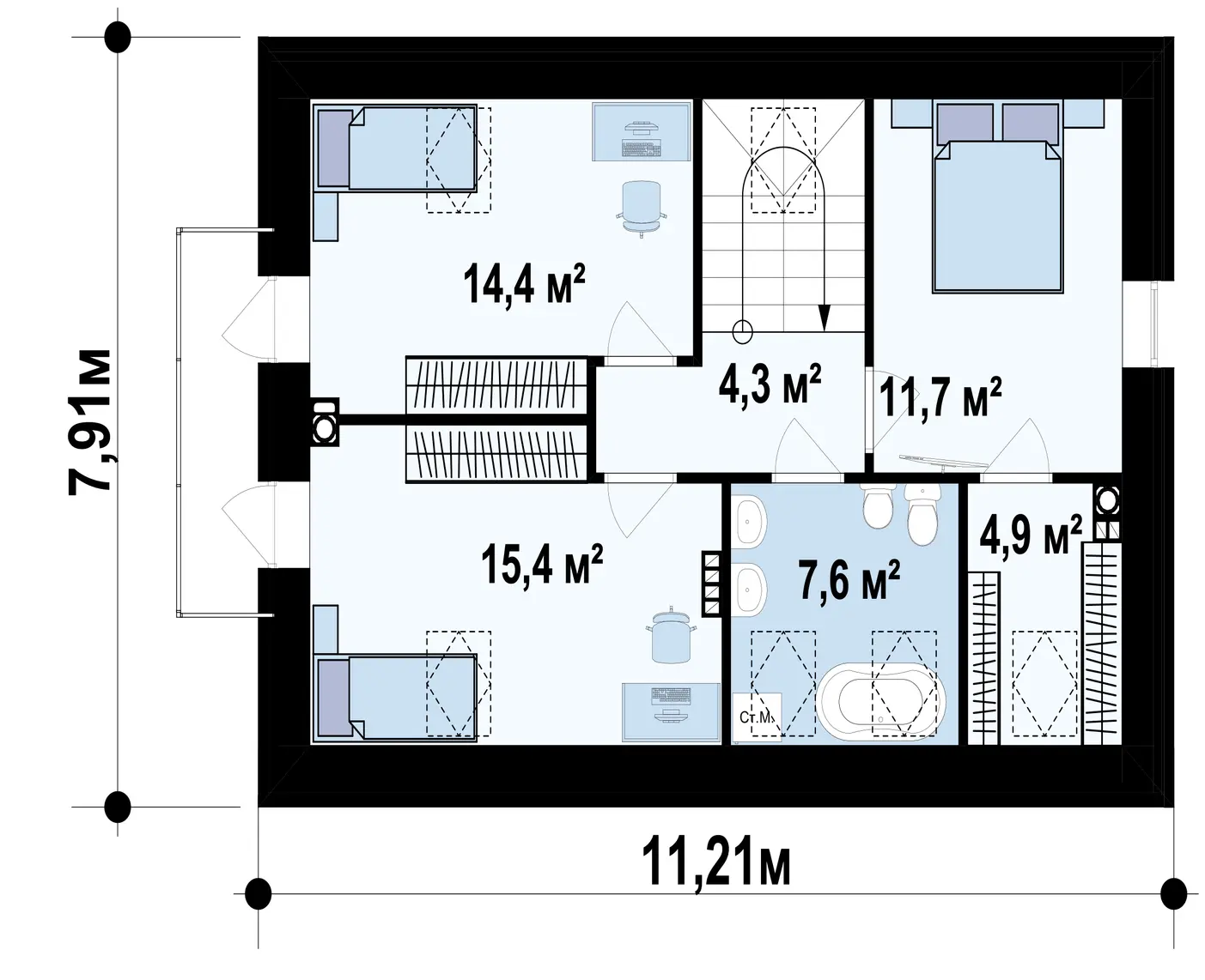 | Возможный материал кровли | металлочерепица, гибкая черепица, керамическая черепица, композитная черепица, цементно-песчаная черепица, фальцевая кровля |