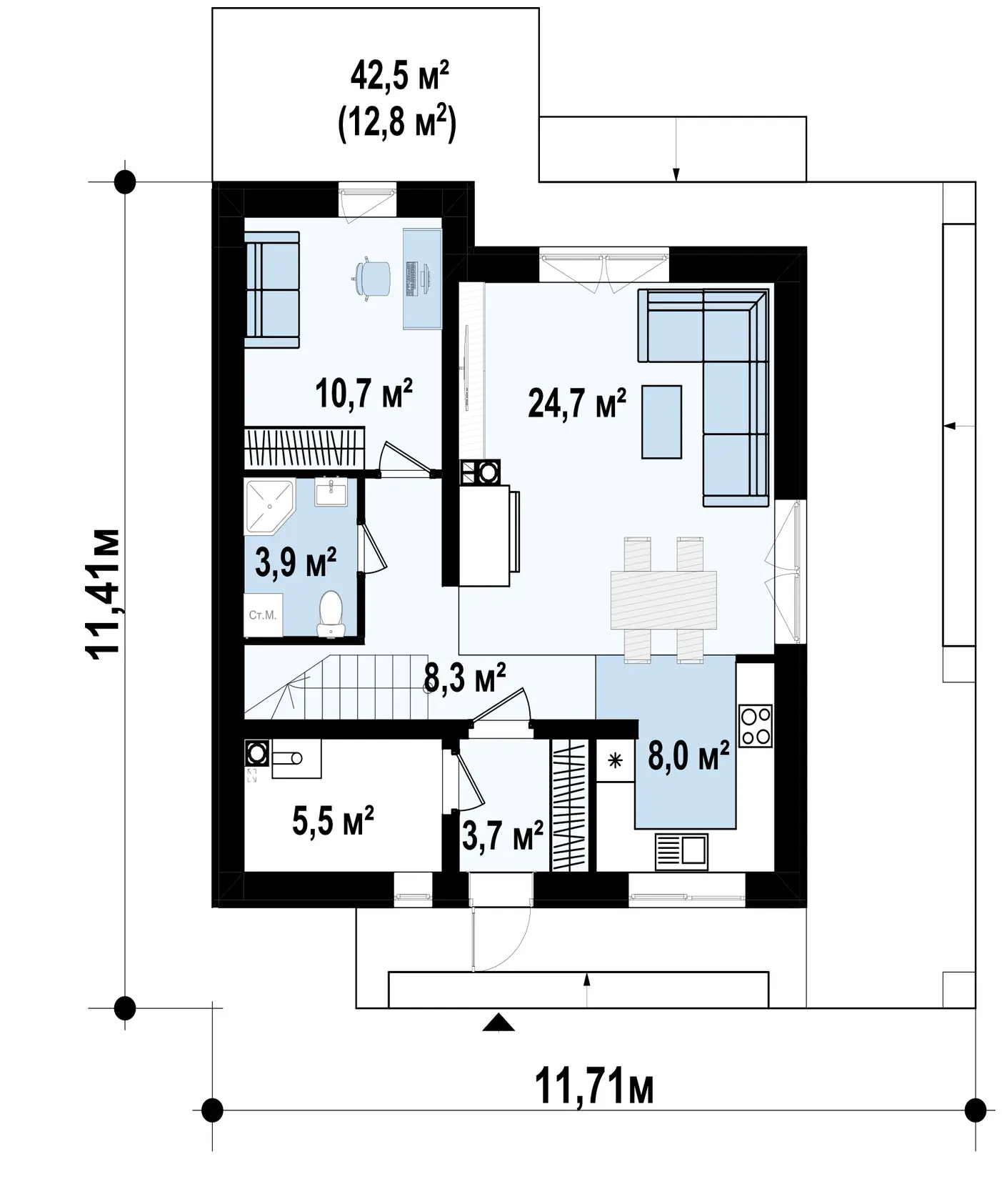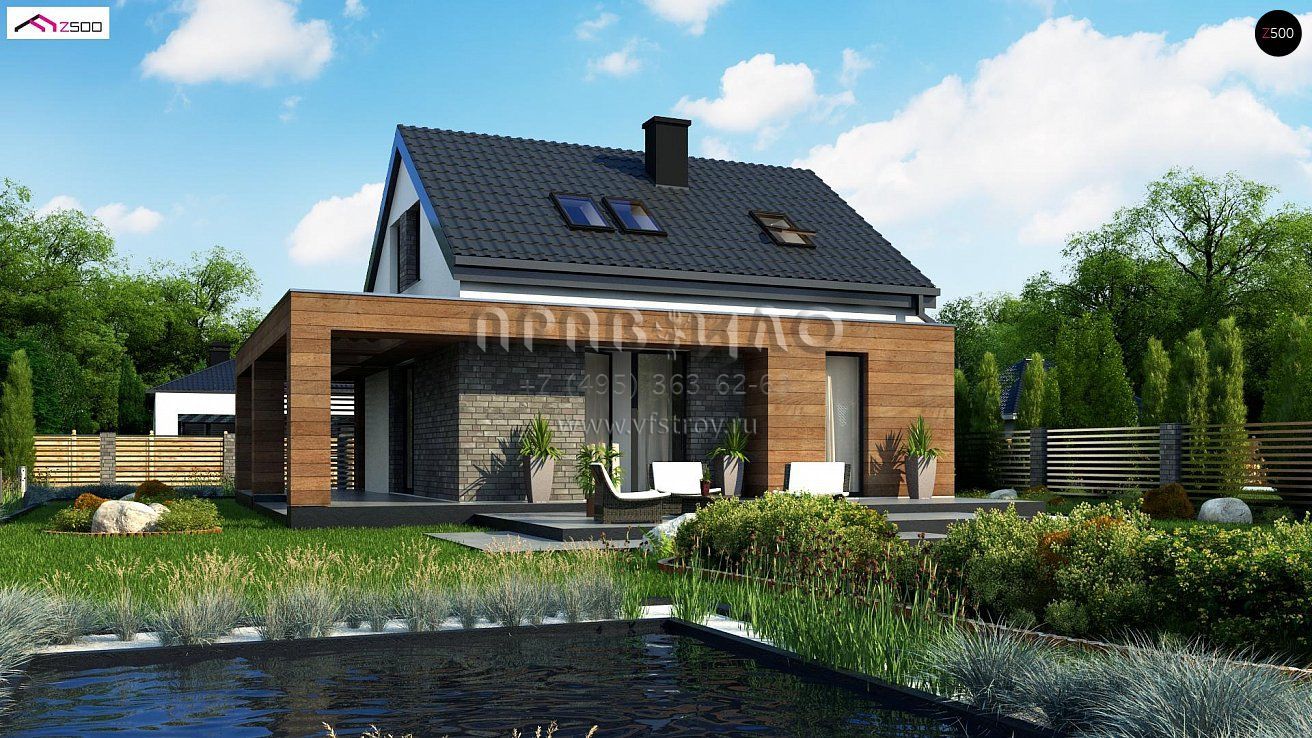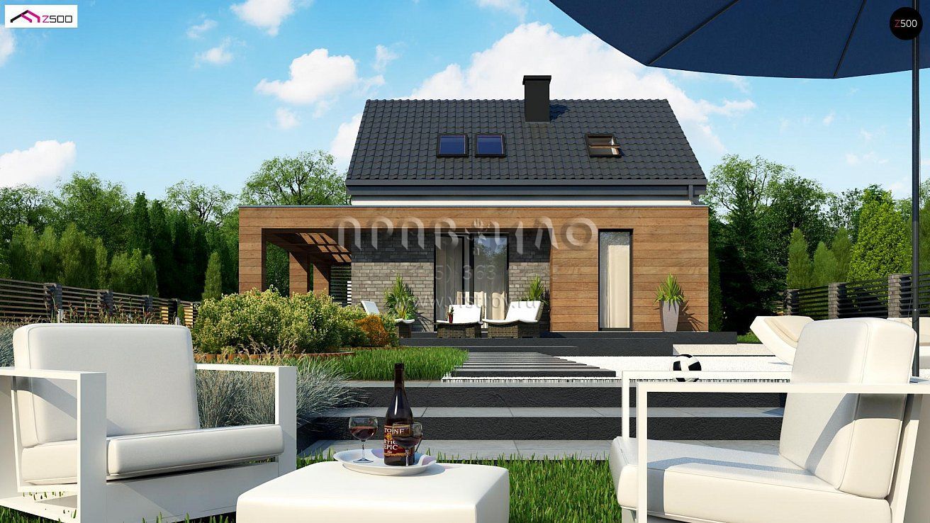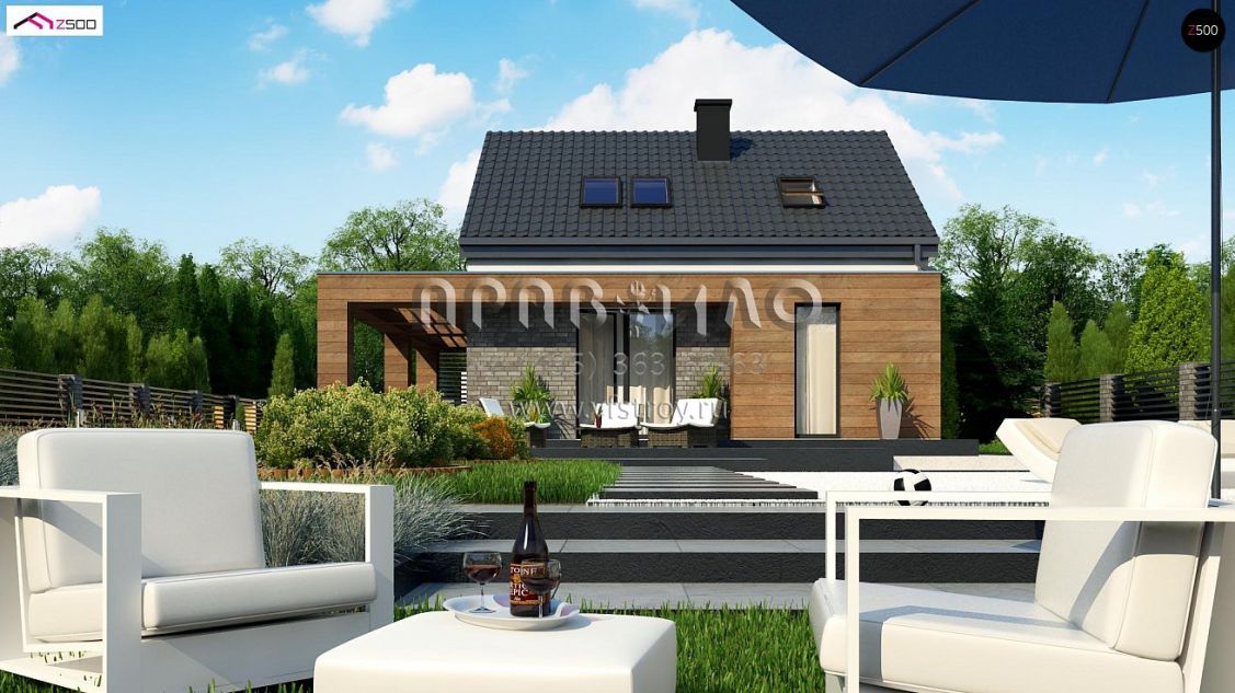 Проект стильного одноэтажного дома с жилой мансардой S3-120-3 (Z385)