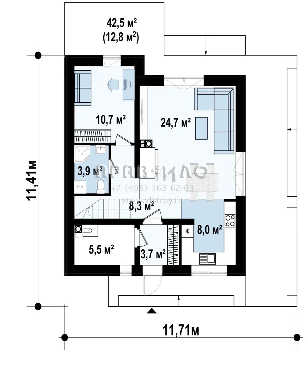 | Возможный материал кровли | металлочерепица, гибкая черепица, керамическая черепица, композитная черепица, цементно-песчаная черепица, фальцевая кровля |