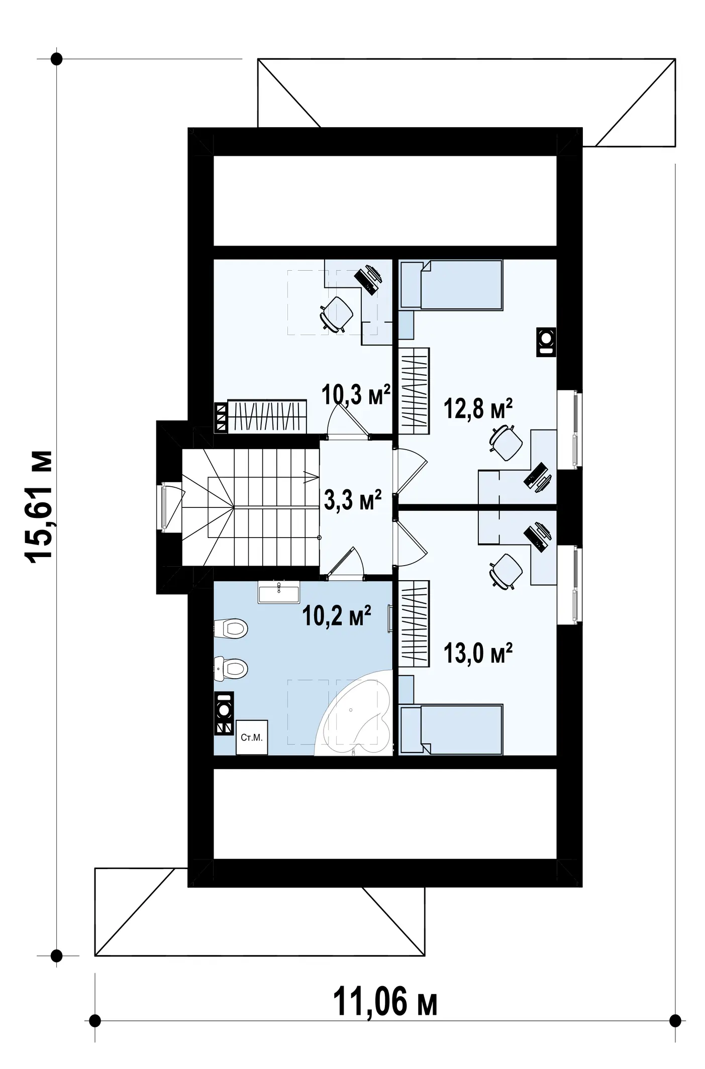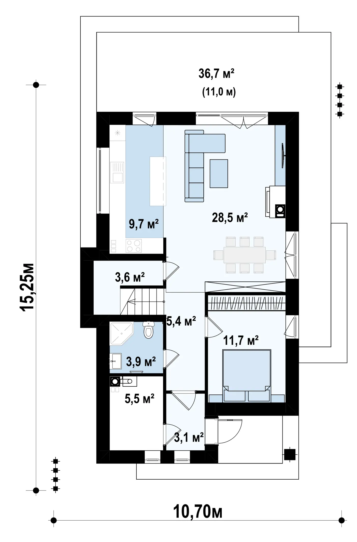Проект современного функционального дома с мансардой и просторной террасой S3-122-5 (Z468)