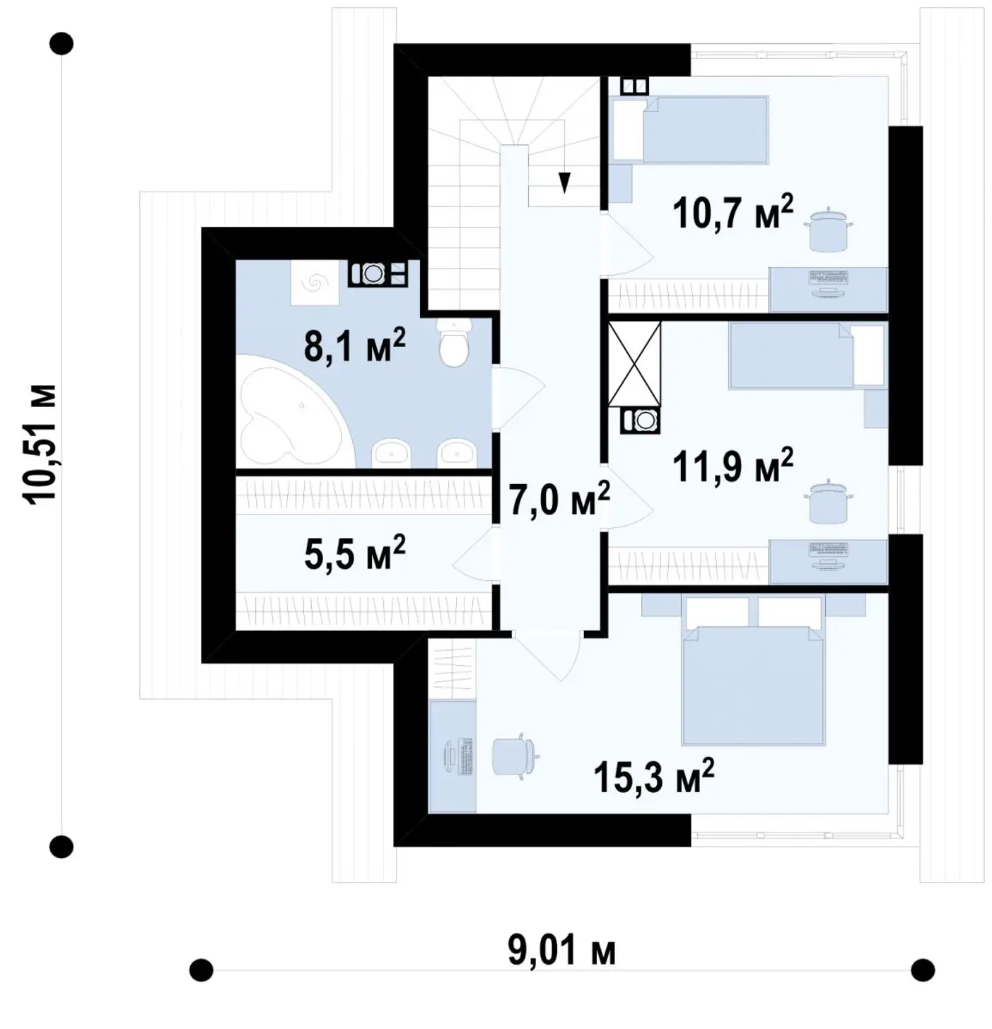 | Возможный материал кровли | металлочерепица, гибкая черепица, керамическая черепица, композитная черепица, цементно-песчаная черепица, фальцевая кровля |