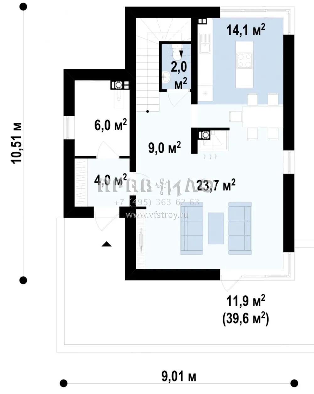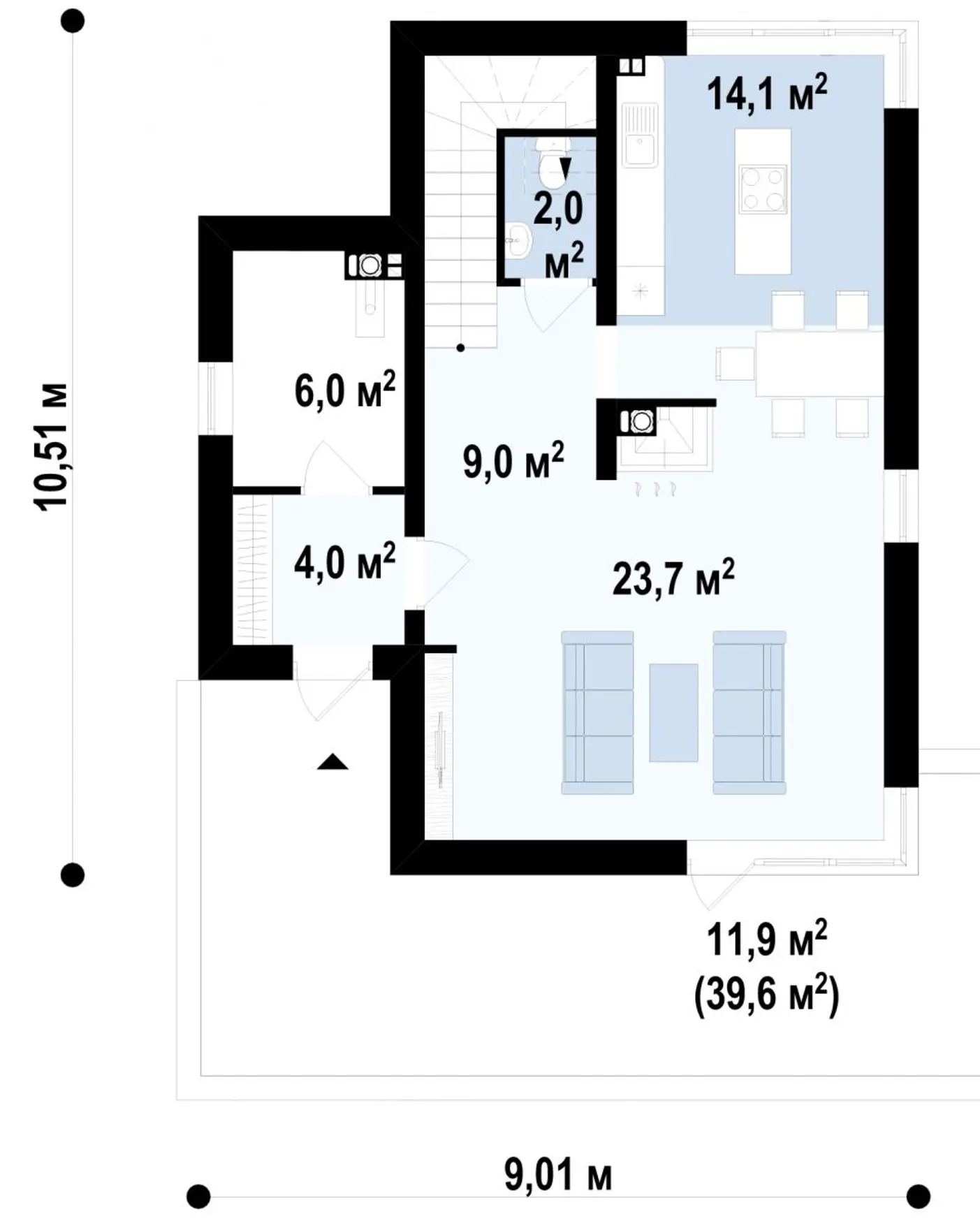 Проект компактного современного дома с двускатной крышей S3-122 (Z155)