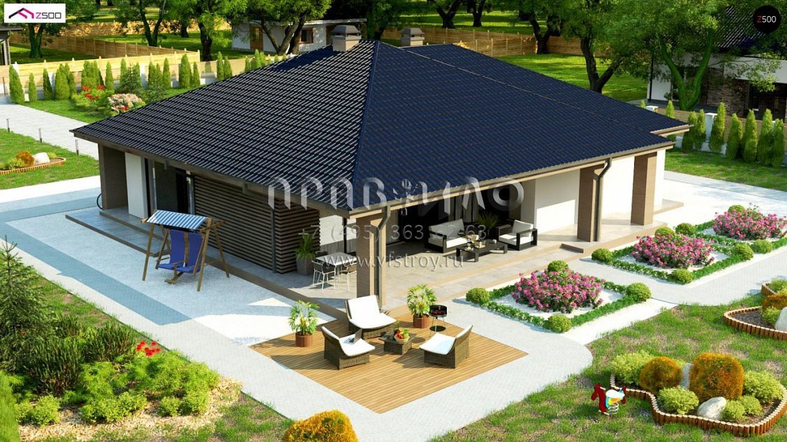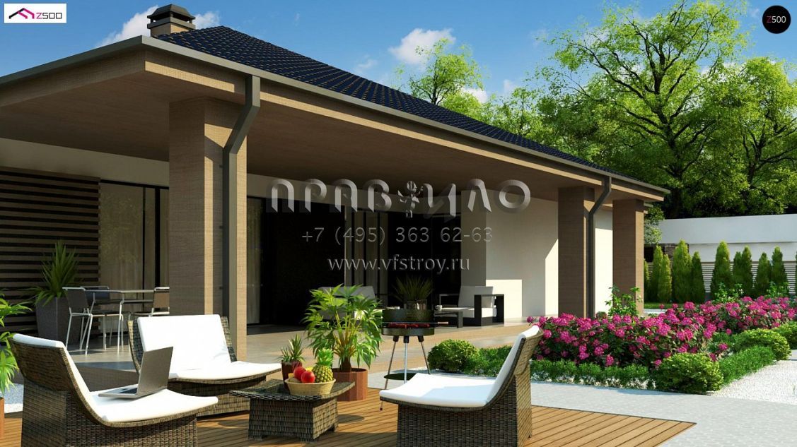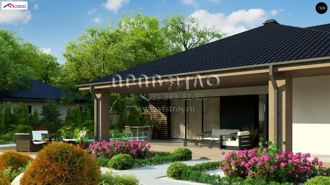 Проект стильного одноэтажного дома с просторной крытой террасой S3-123-6 (Z344)