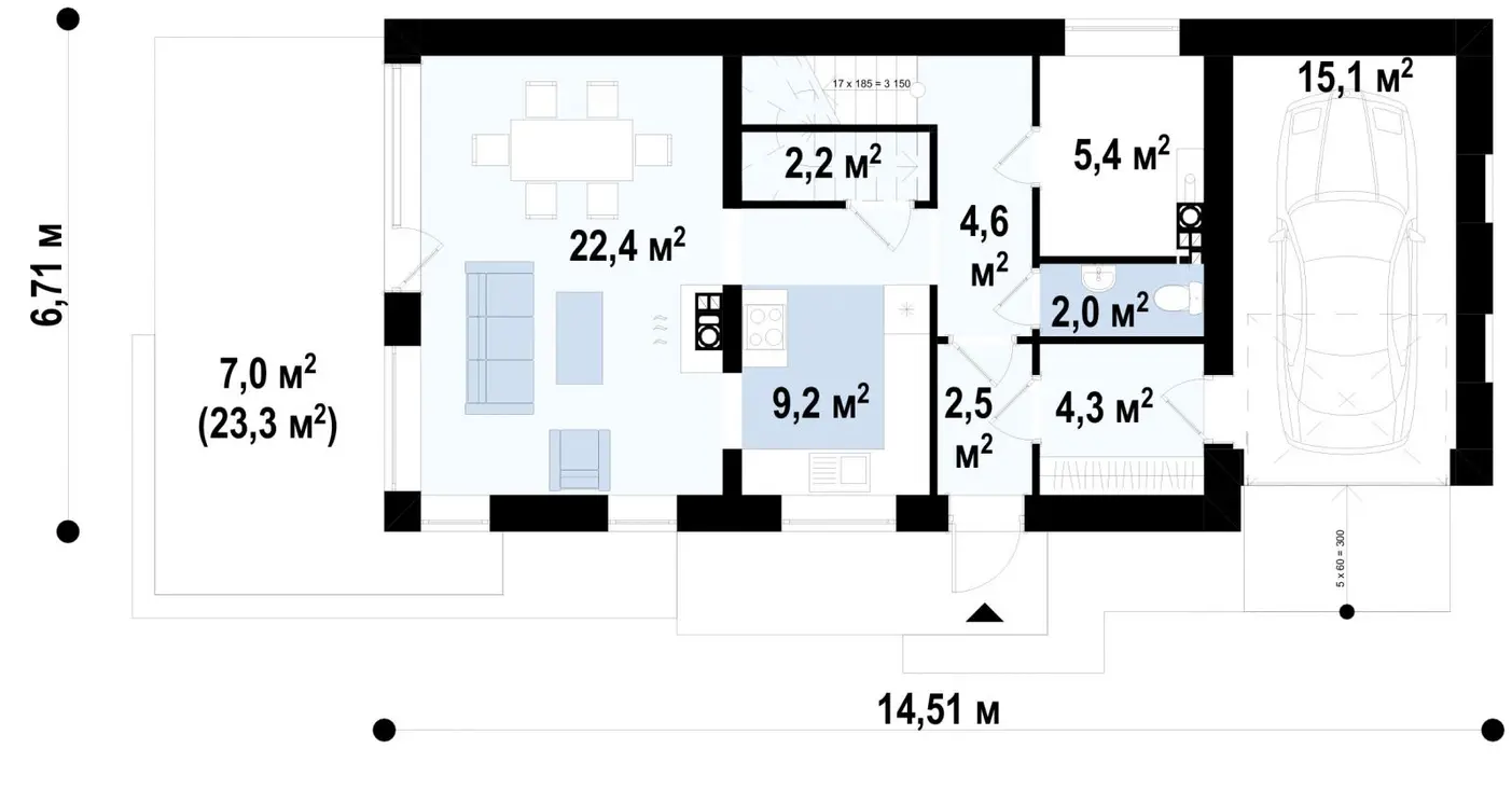 Проект узкого дома с пристроенным гаражом S3-123 (Z298)
