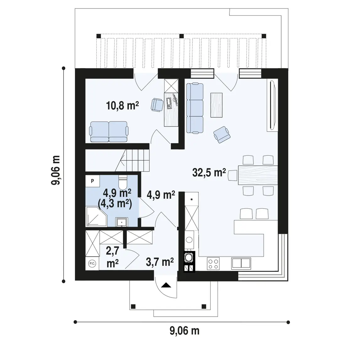 Проект мансардного дома с комнатой на первом этаже S3-123 (Z580)