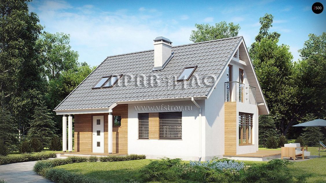 Проект уютного одноэтажного дома с мансардой и балконом S3-126-7 (z101 pk)