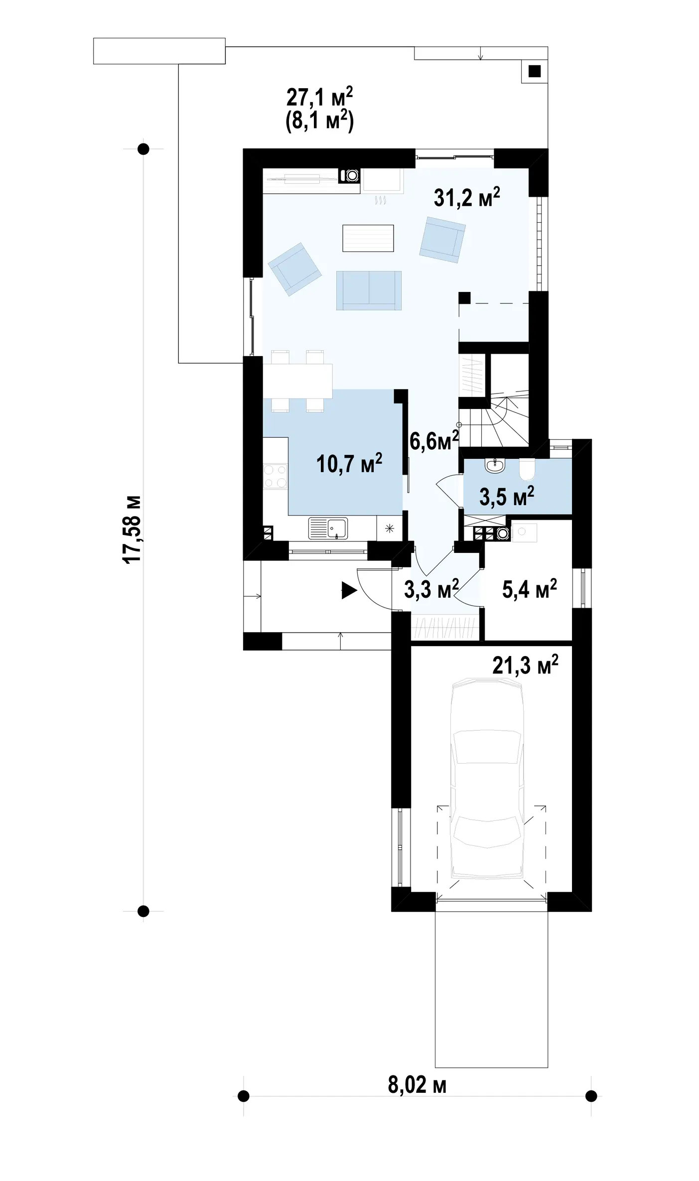 Проект дома с фронтальным гаражом S3-127-4 (Z297 GF)