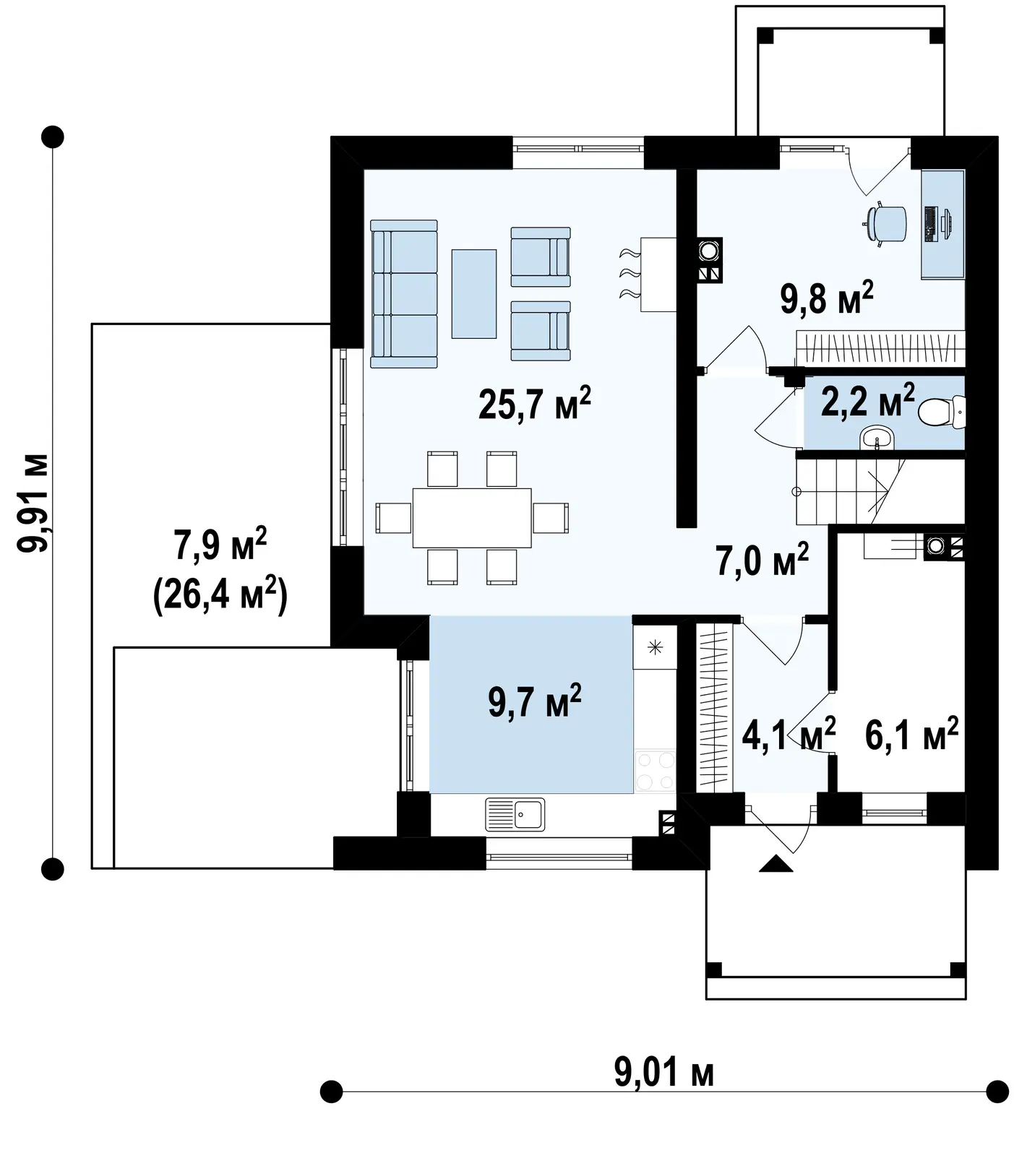 Проект комфортного частного дома для двоих S3-129 (Z248)
