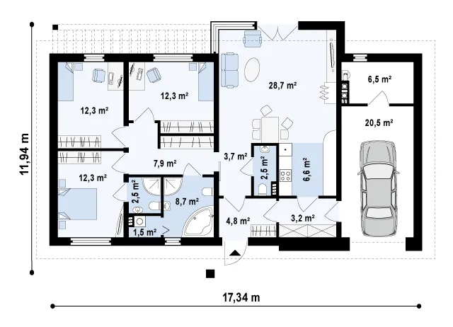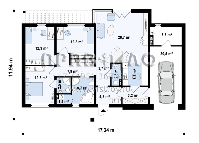 Проект строительства одноэтажного оригинального дома S3-133-4(Z165 v2)