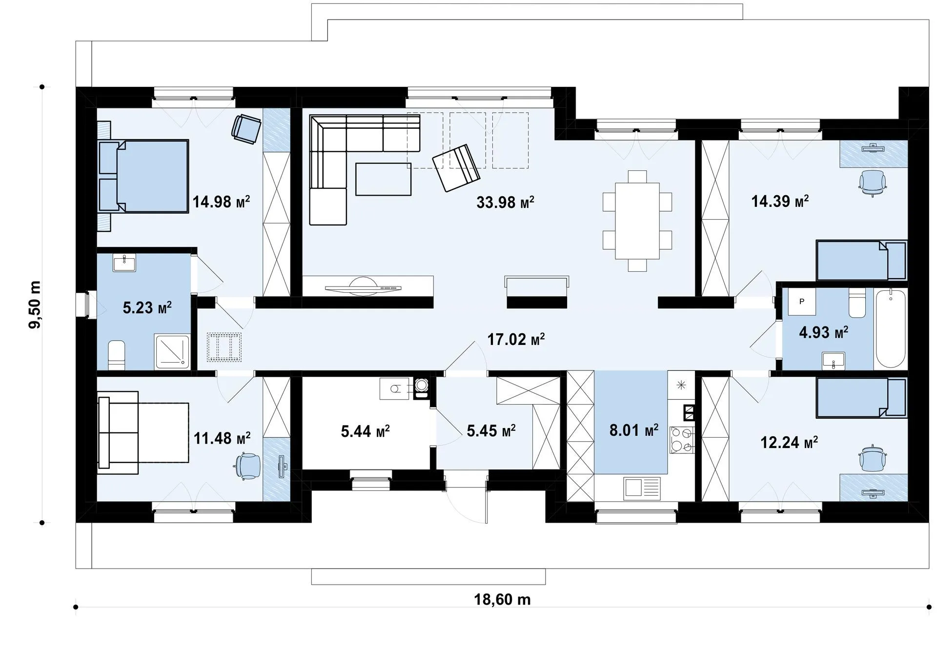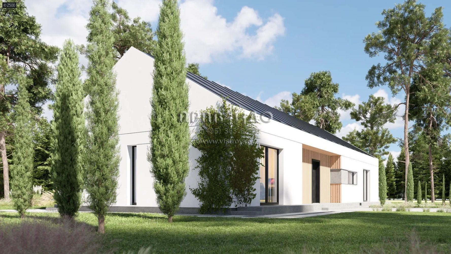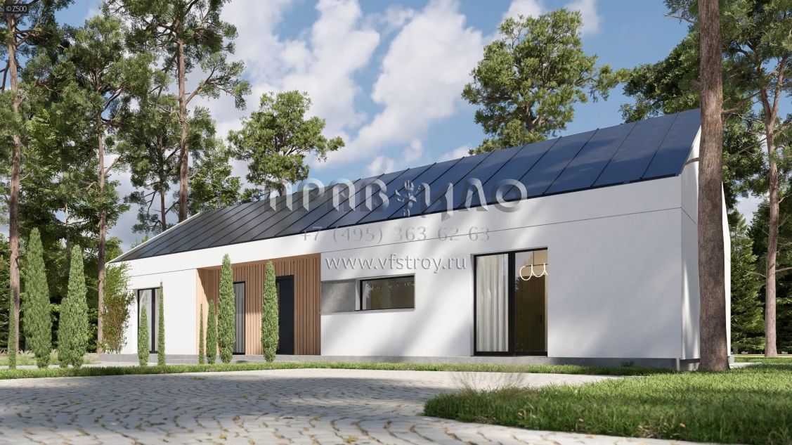Проект одноэтажного современного коттеджа с 4 спальнями на 2 крыла s3-133 (Z577)
