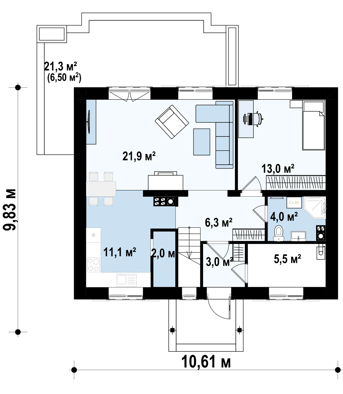 | Возможный материал кровли | металлочерепица, гибкая черепица, керамическая черепица, композитная черепица, цементно-песчаная черепица, фальцевая кровля |