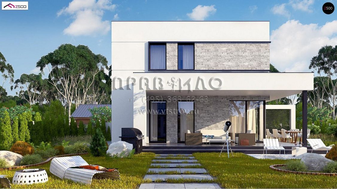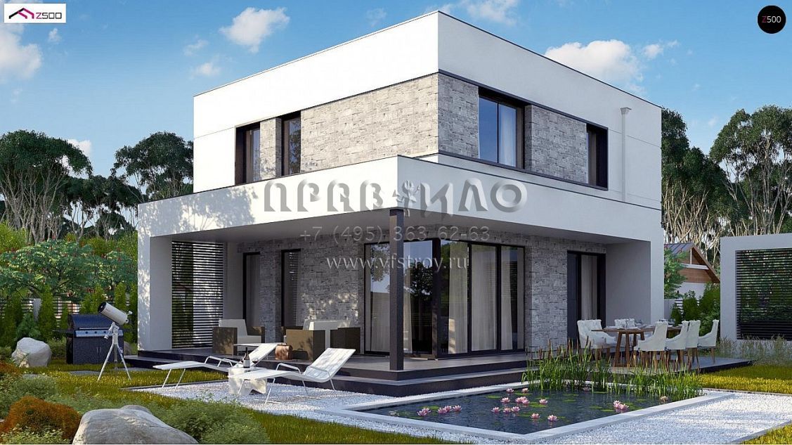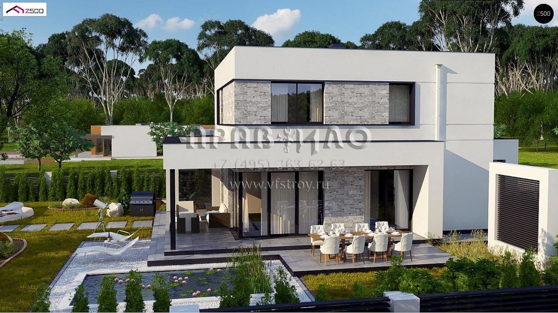 Проект современного двухэтажного дома с комфортной угловой террасой S3-135-5 (ZX92 PK)