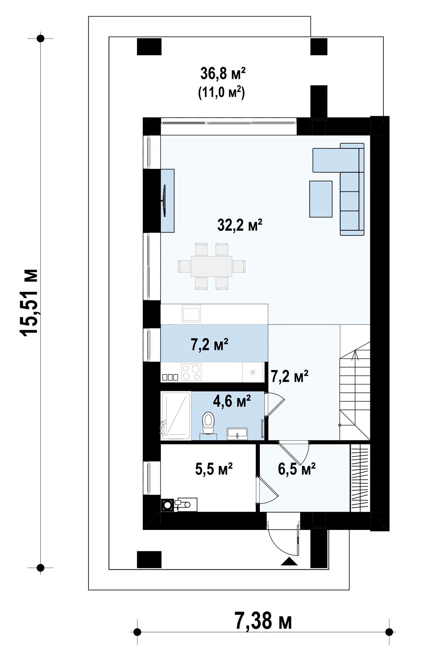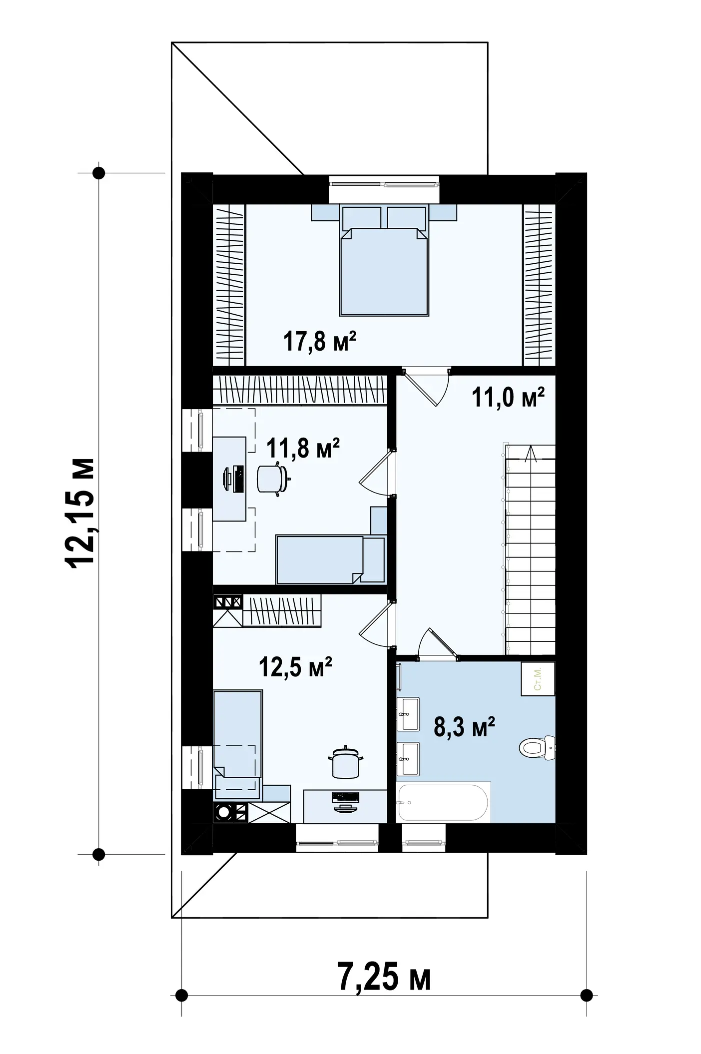 Проект мансардного дома для узкого участка S3-135 (Z431 v1)