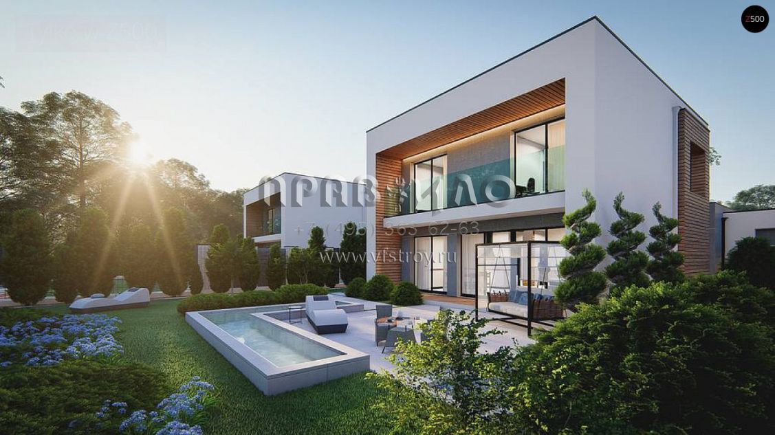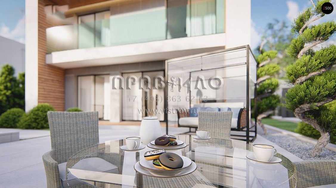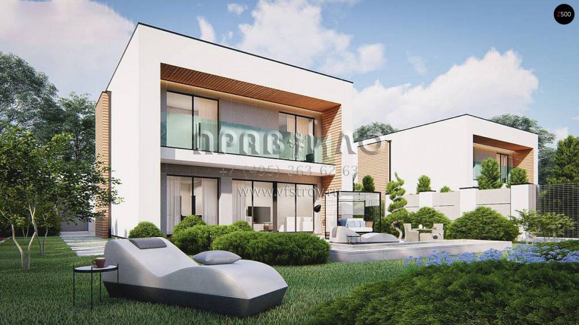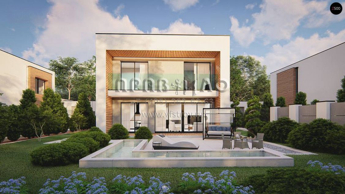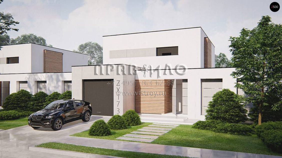 Проект двухэтажного дома в стиле хай-тек с гаражом, камином и террасой S3-137-2 (zx173)