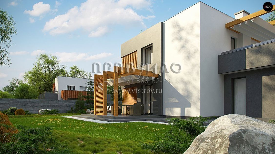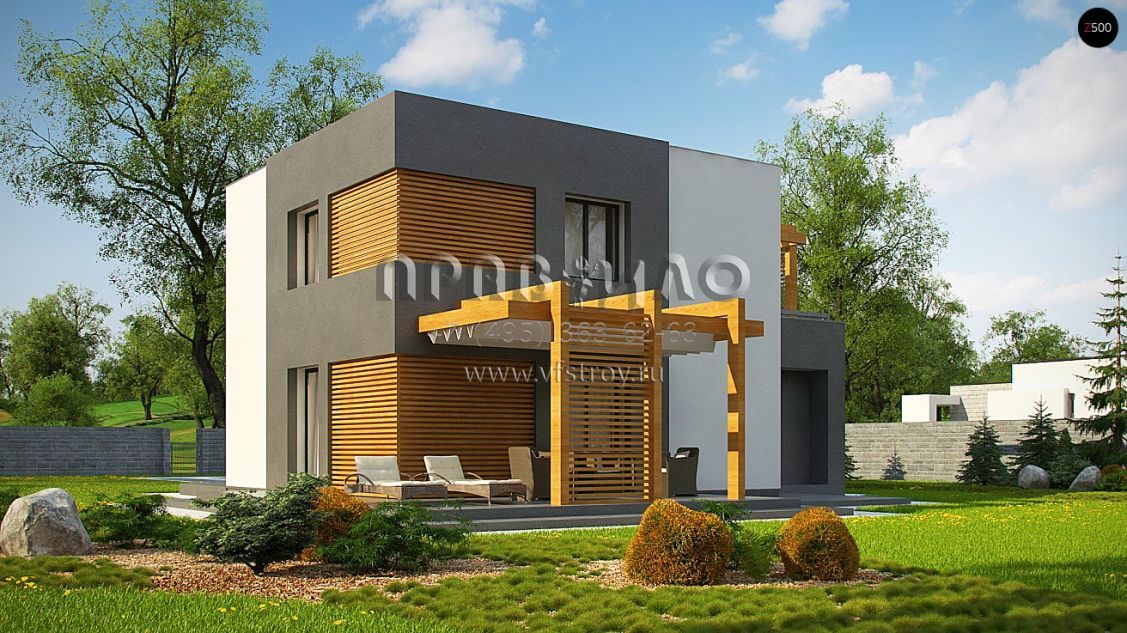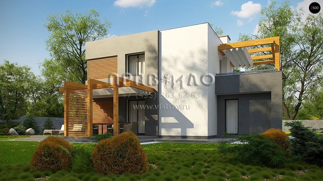 Проект оригинального двухэтажного дома в стиле хайтек с террасами на двух уровнях S3-137 (Zx73)