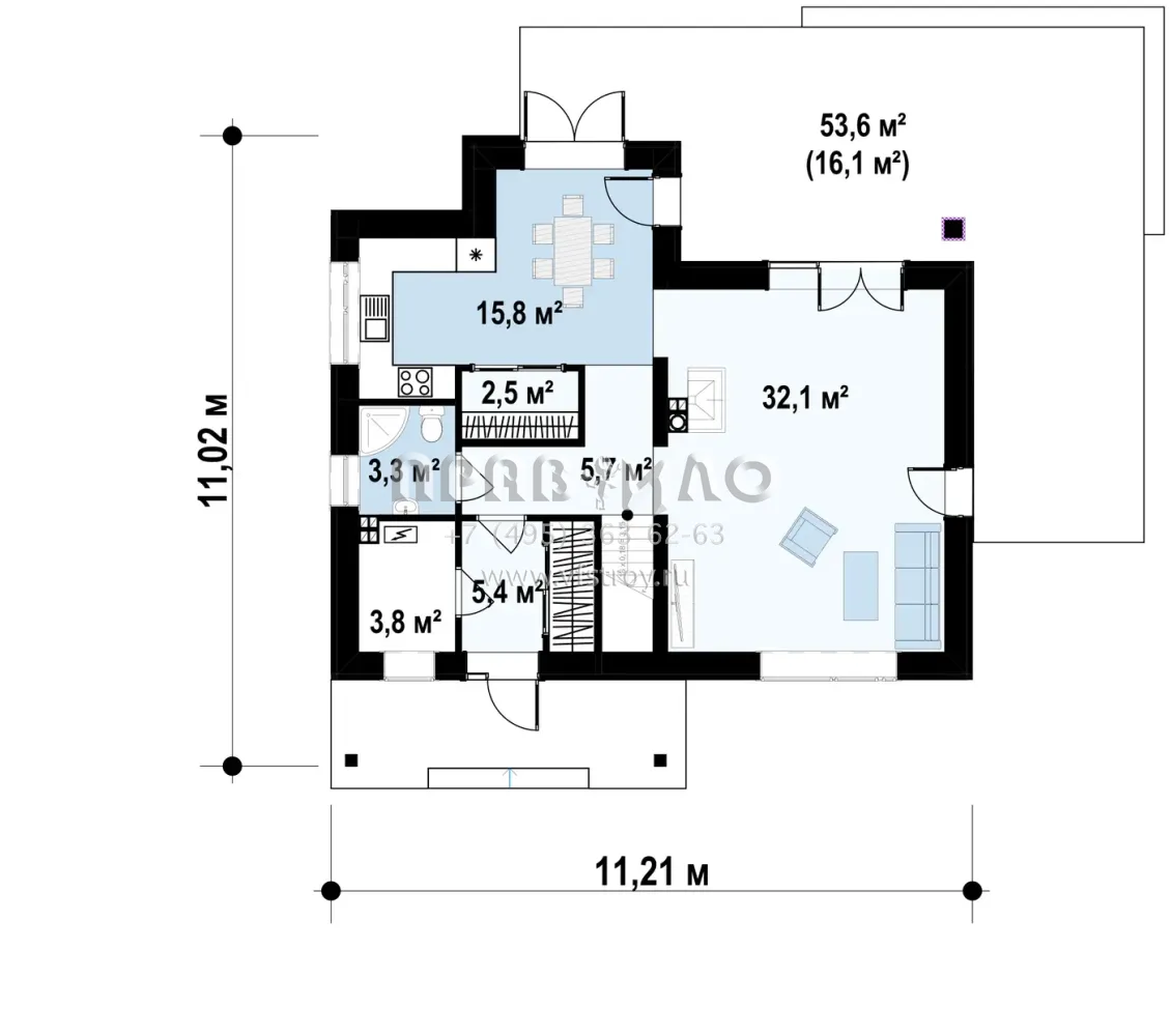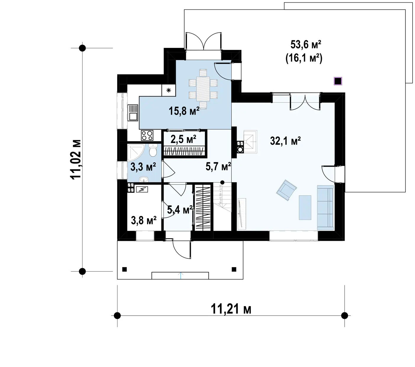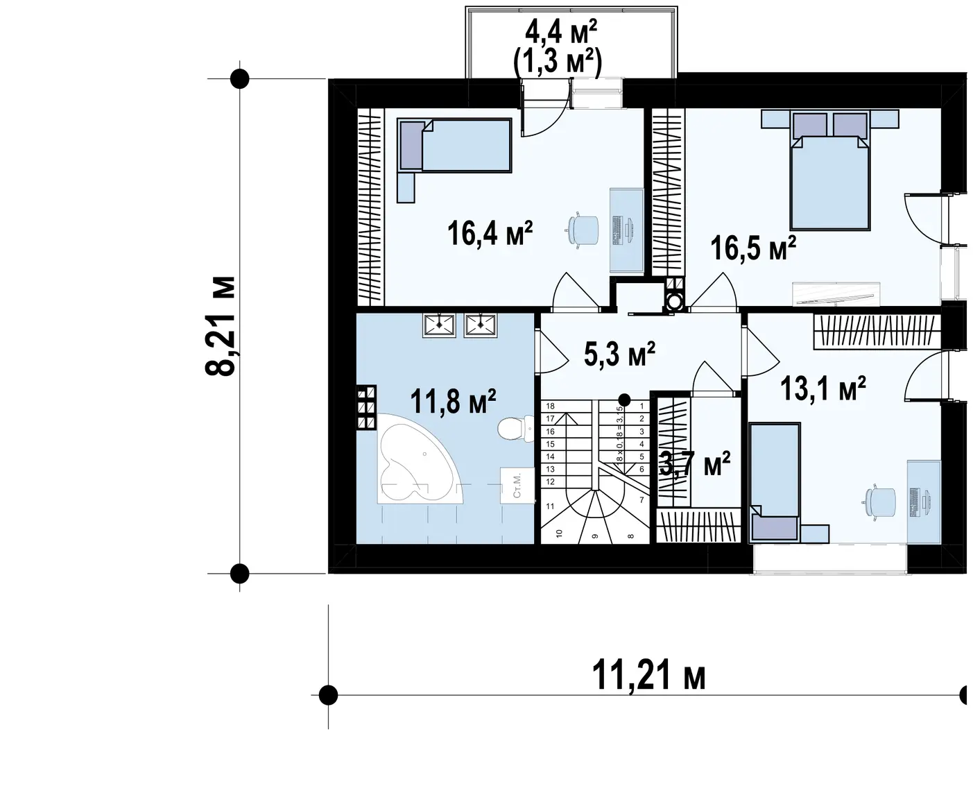 | Возможный материал кровли | металлочерепица, гибкая черепица, керамическая черепица, композитная черепица, цементно-песчаная черепица, фальцевая кровля |