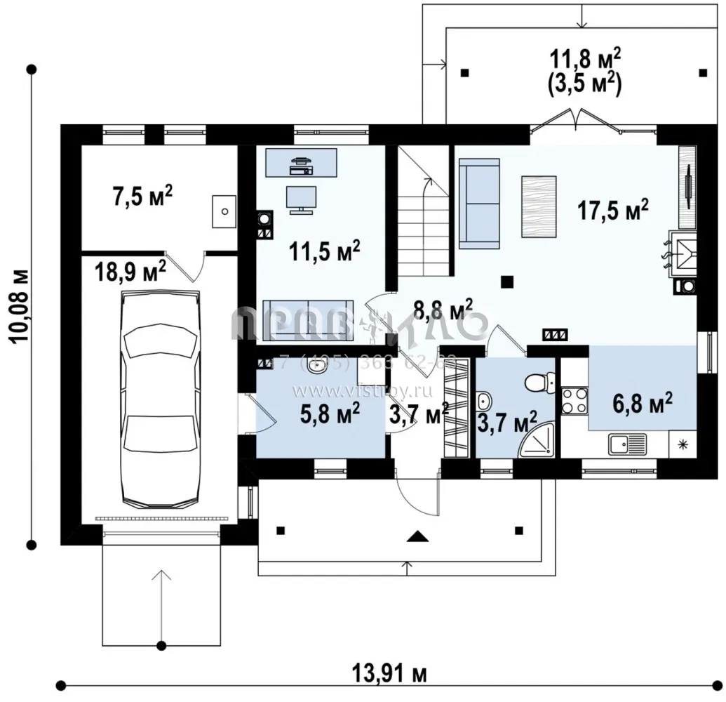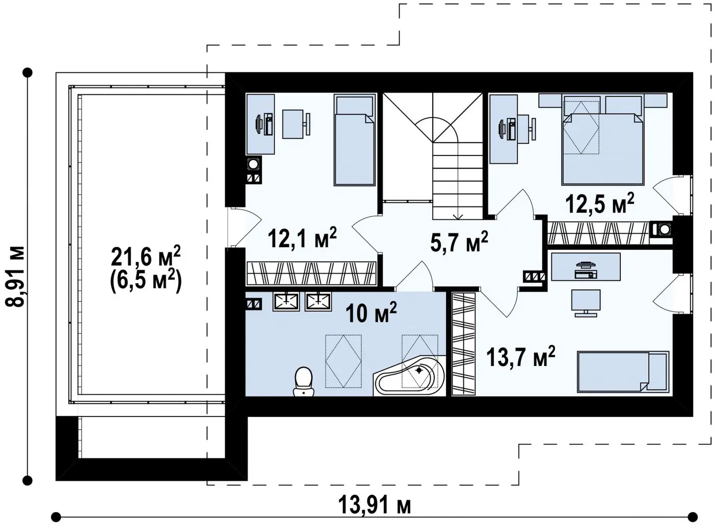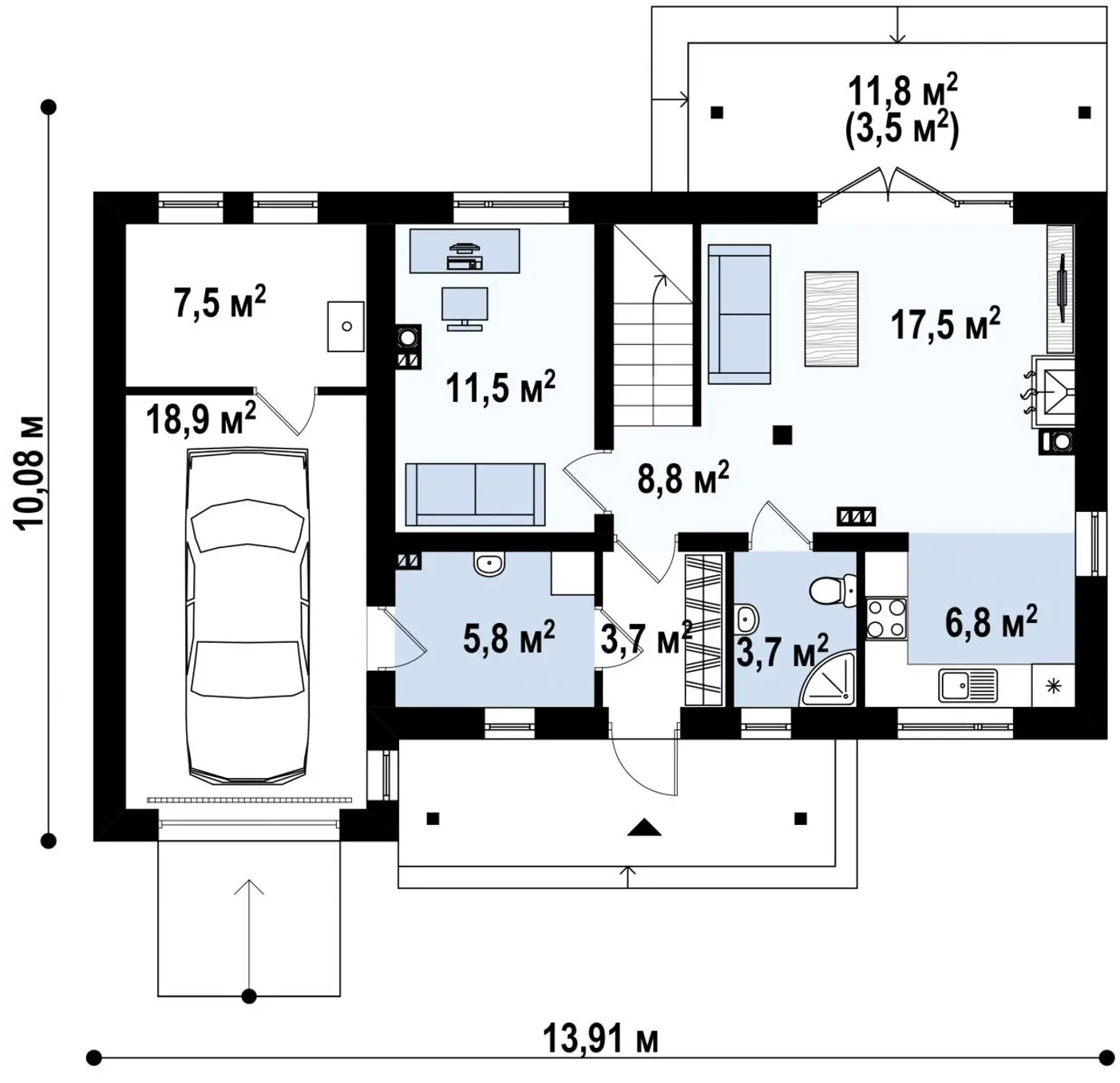 Проект коттеджа с мансардой, встроенным гаражом и террасой S3-139-6 (Z210 GLt)