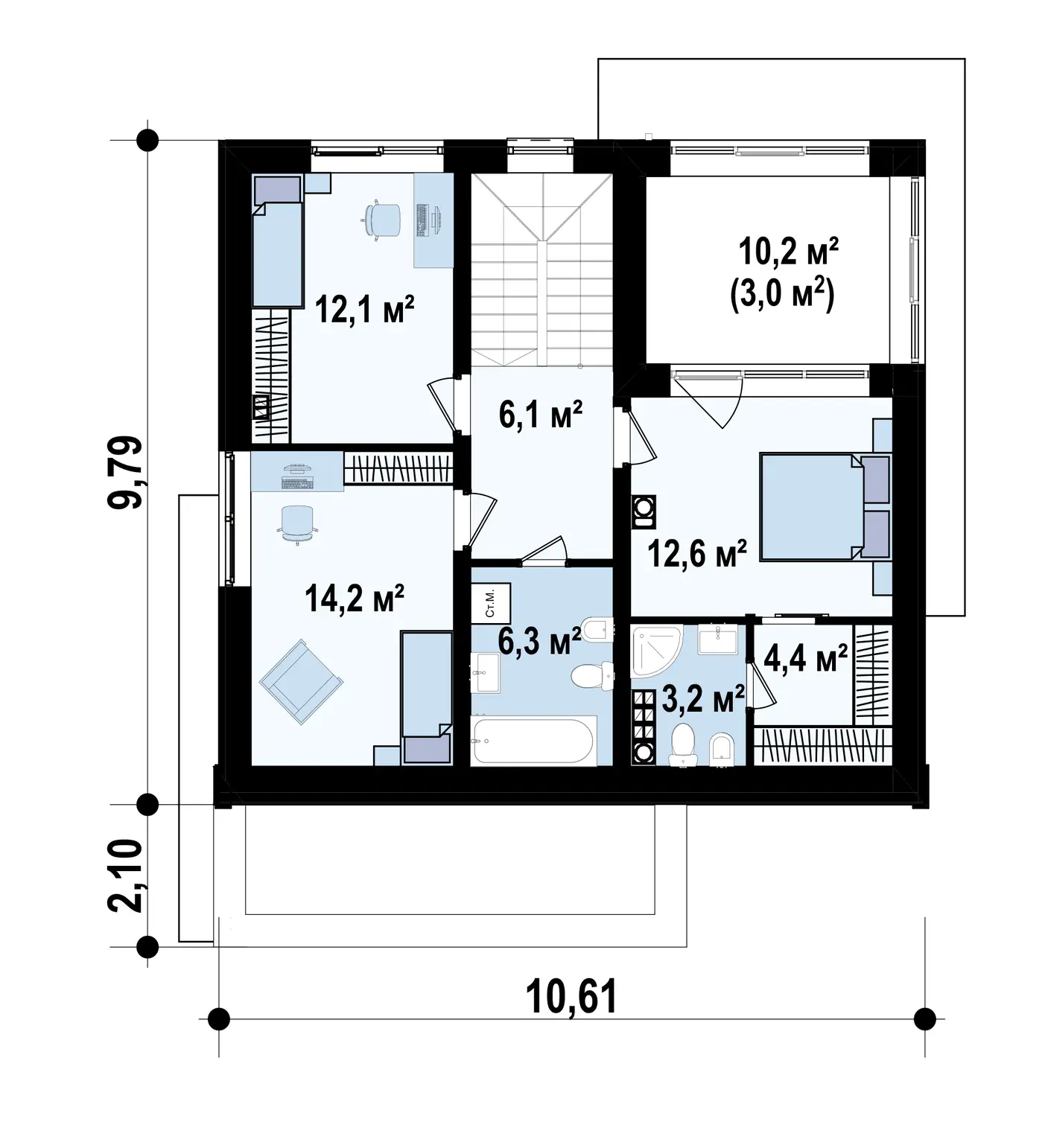 Проект двухуровневого дома с односкатной крышей S3-141 (Z392)