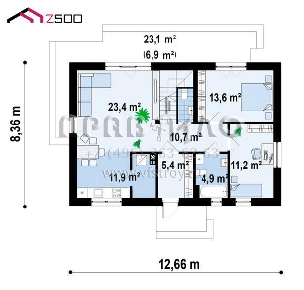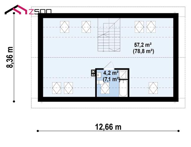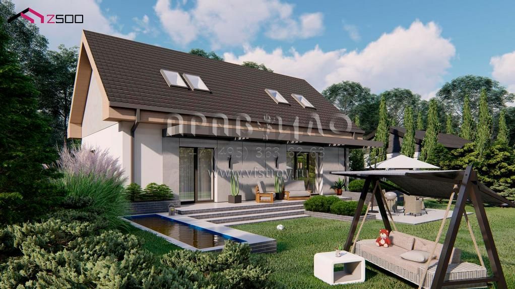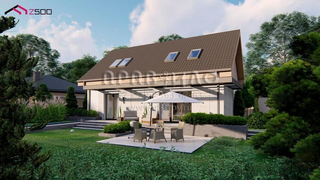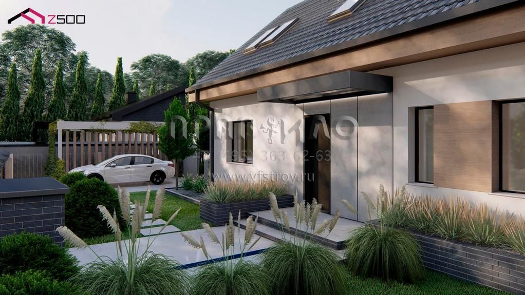 Проект современного одноэтажного дома с мансардой свободной планировки S3-144-2 (z517)