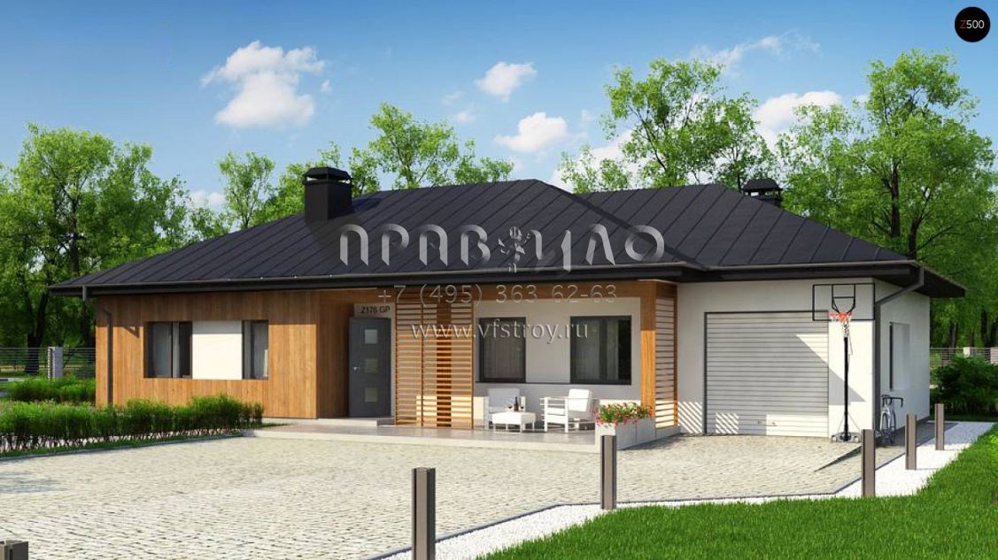 Проект одноэтажного четырехкомнатного дома с гаражом S3-145-2 (Z176 GP)