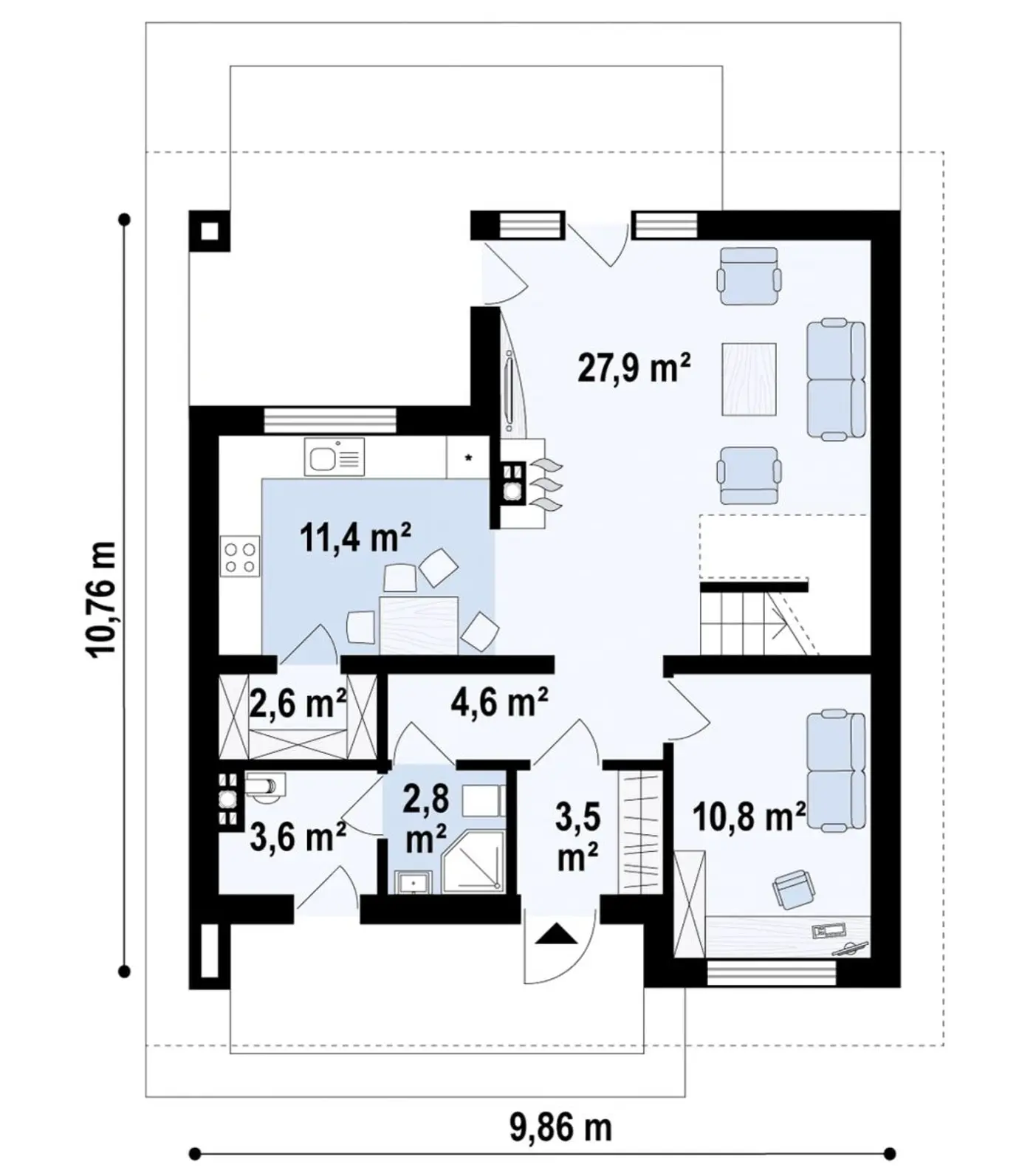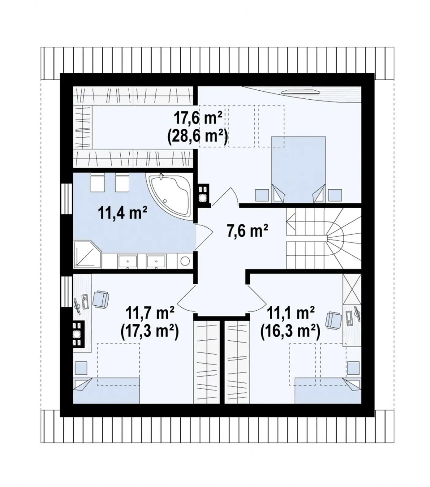 Проект традиционного дома с жилой мансардой и оригинальной террасой s3-148-5 (Z62 A minus)