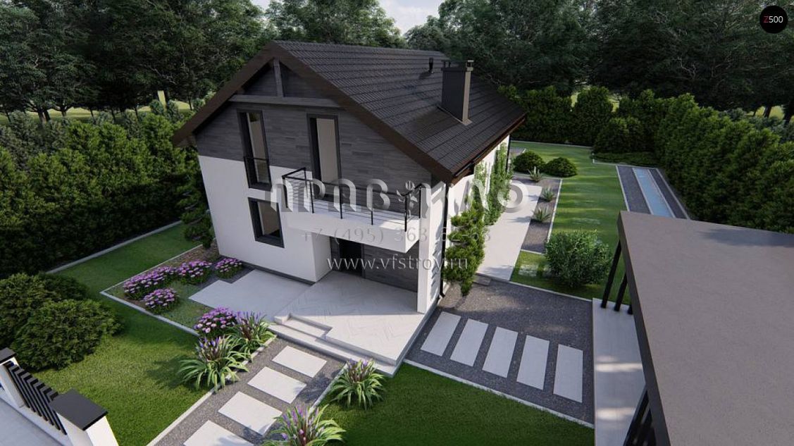Проект современного одноэтажного дома с мансардой и балконом S3-148-8 (Z38 plus)