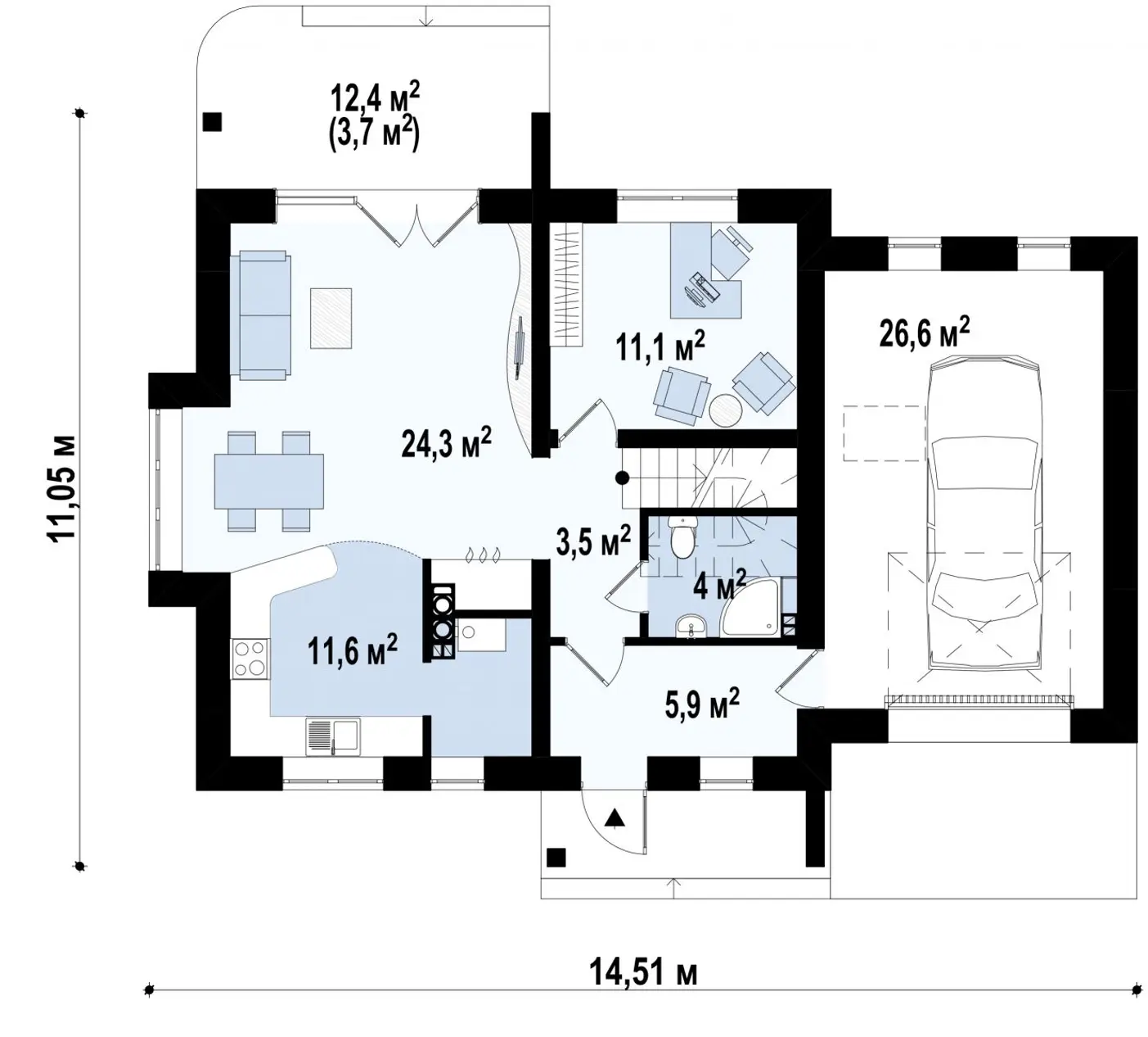 Проект коттеджа с пристроенным к правому фасаду гаражом S3-149-2 (Z102 GP)