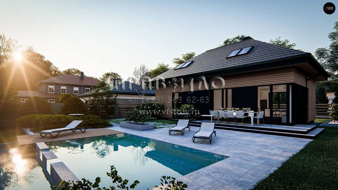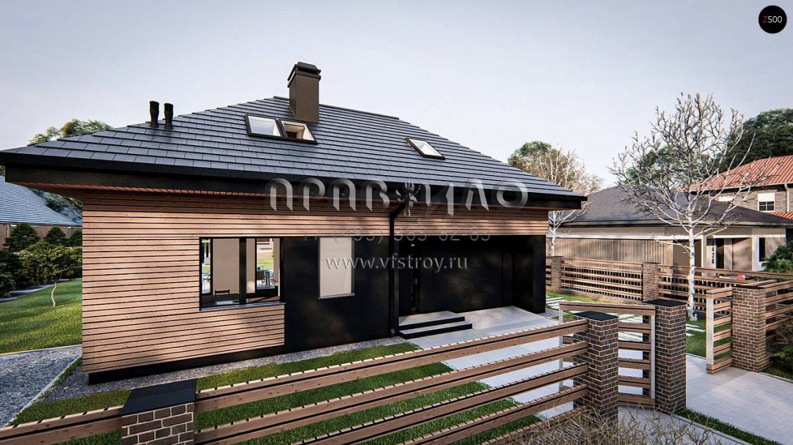 Проект одноэтажного дома с мансардой, гаражом и камином S3-154-7 (z491)