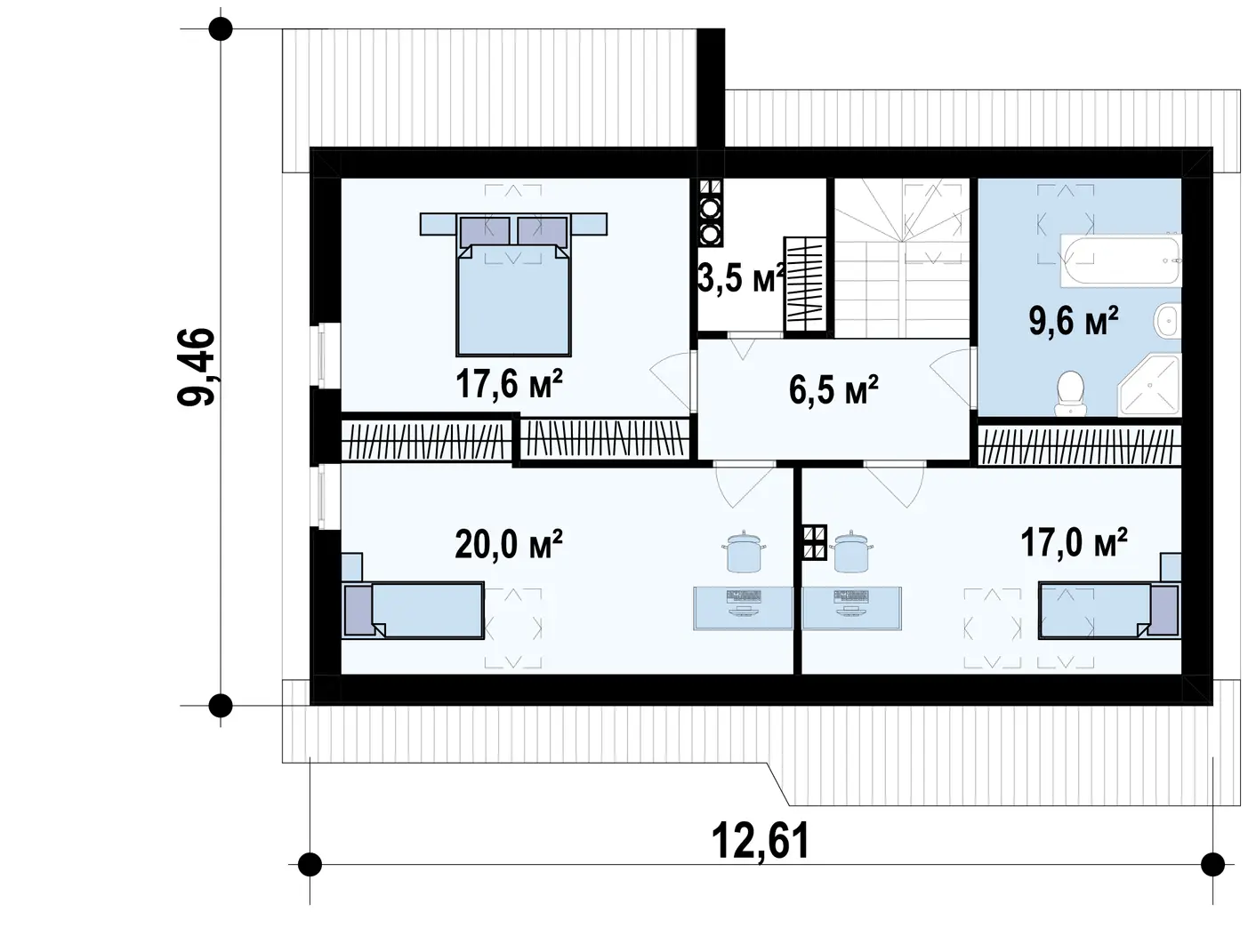 | Возможный материал кровли | металлочерепица, гибкая черепица, керамическая черепица, композитная черепица, цементно-песчаная черепица, фальцевая кровля |