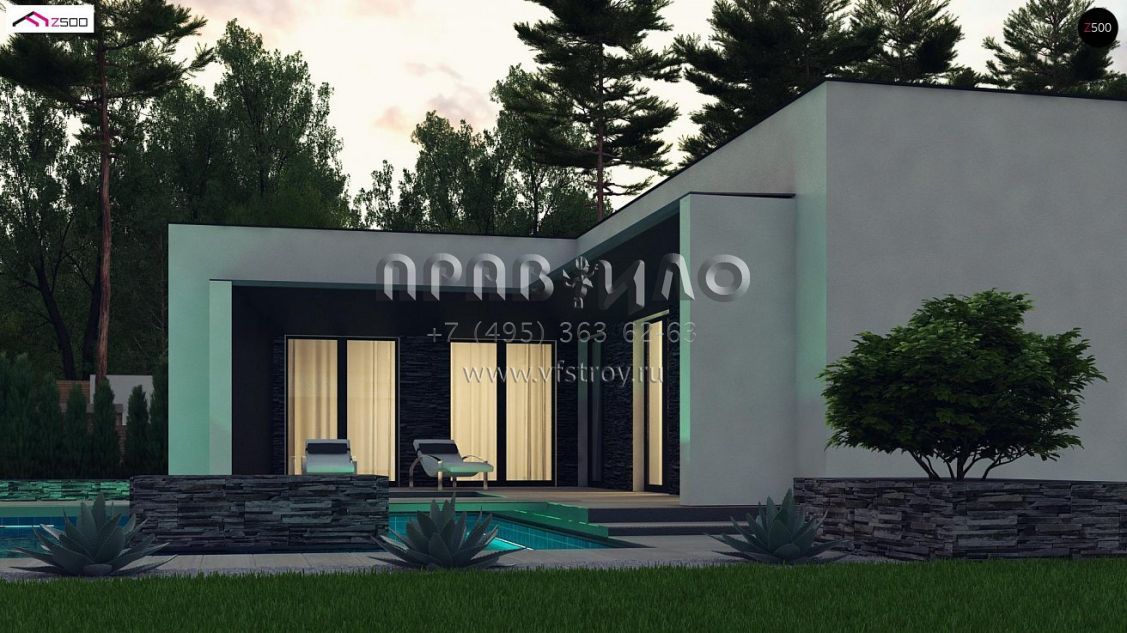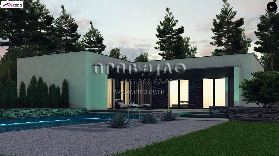 Проект современного одноэтажного коттеджа с встроенным гаражом S3-162-1 (Zx160)