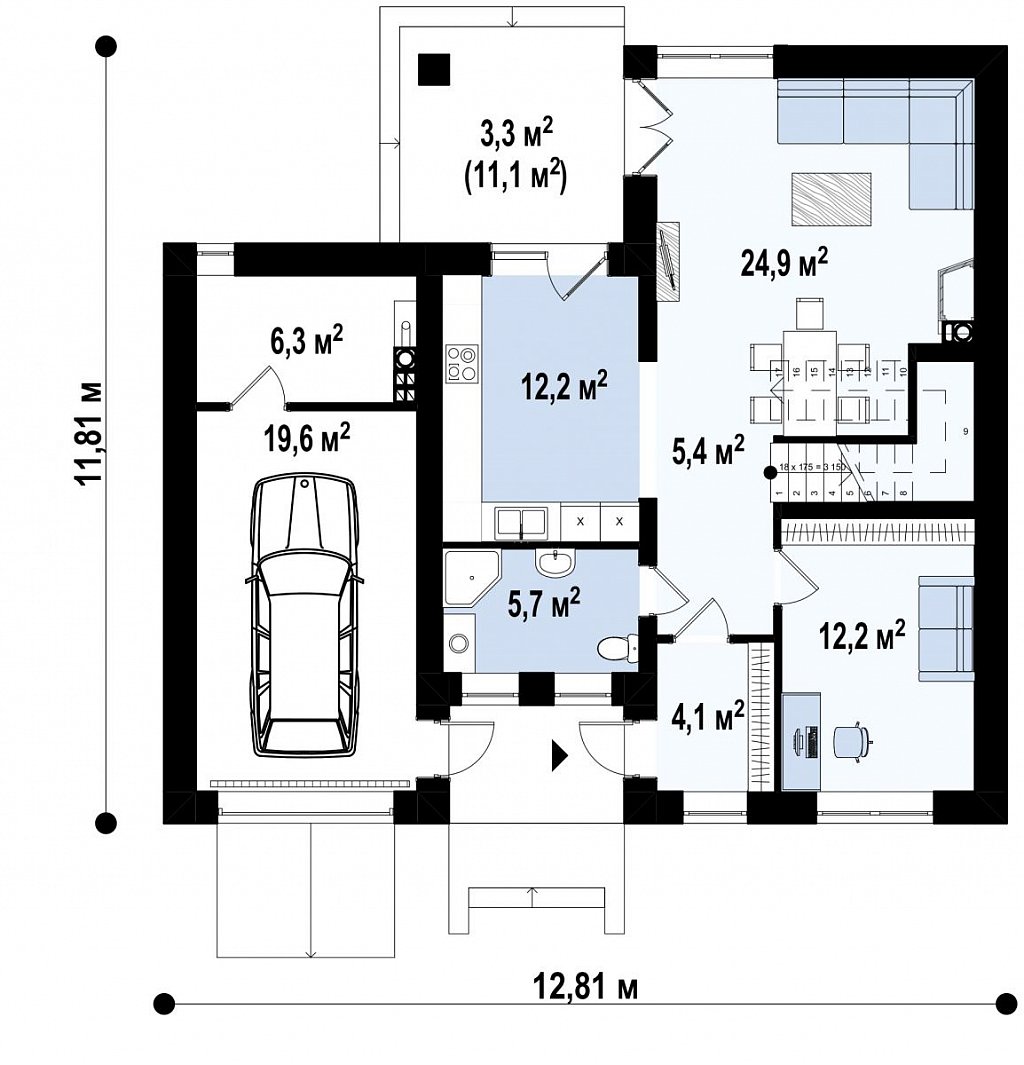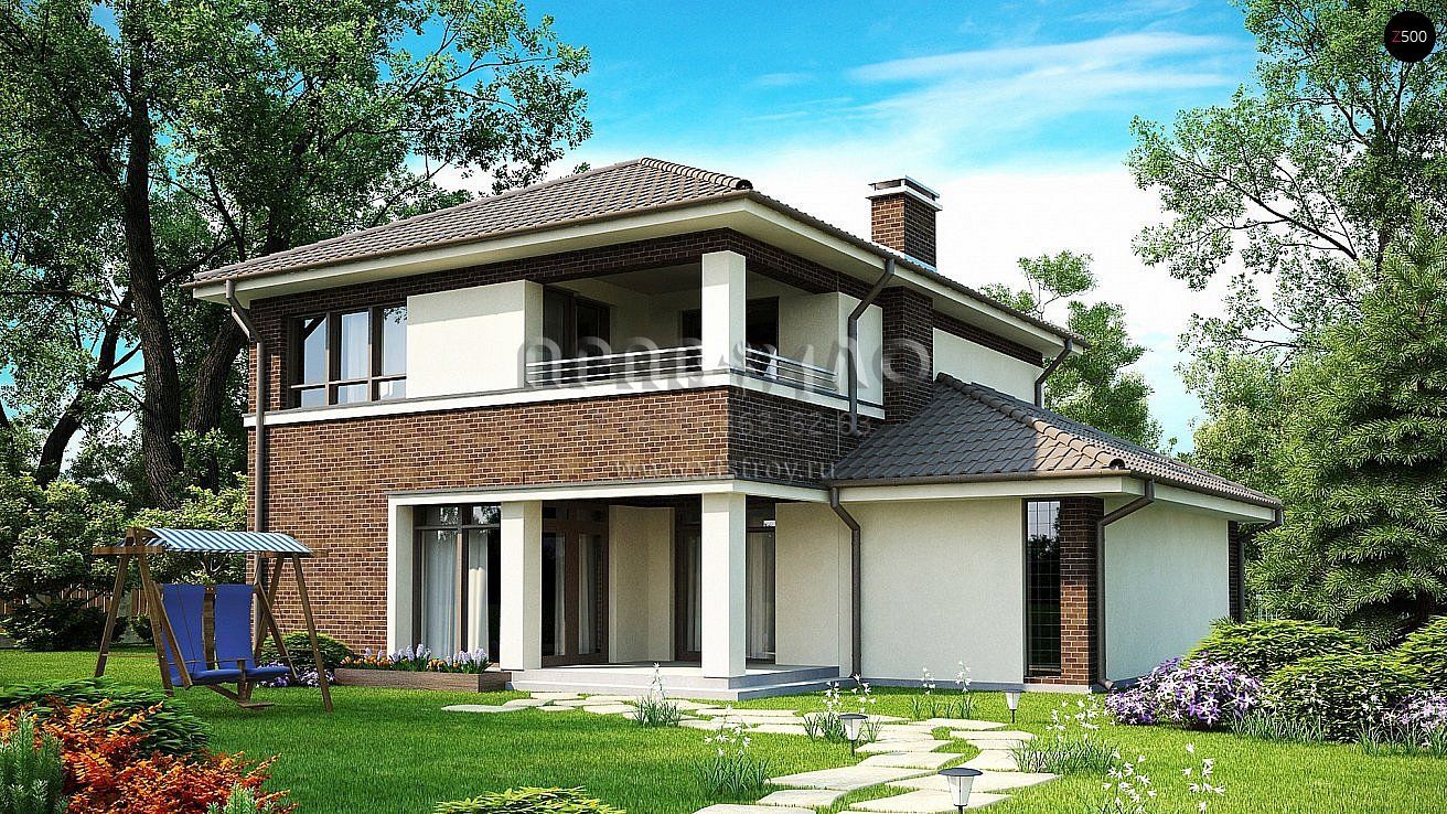 Проект современного функционального двухэтажного дома с гаражом и камином S3-163-10 (Zx24 v2)