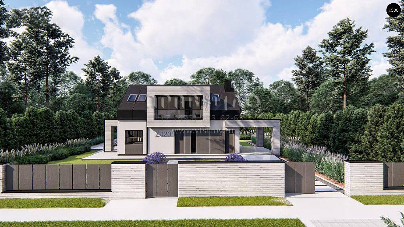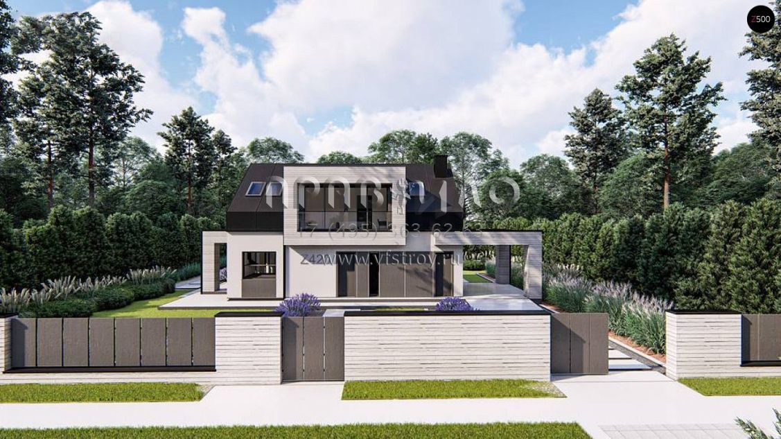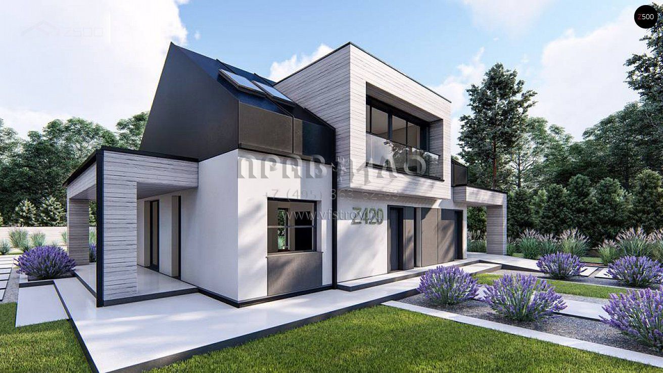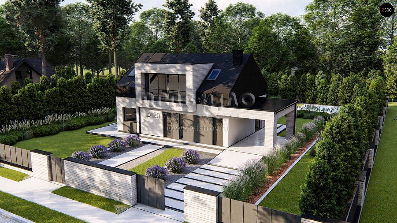 Проект необычного дома с мансардой и навесом для автомобиля S3-163-7 (z420)