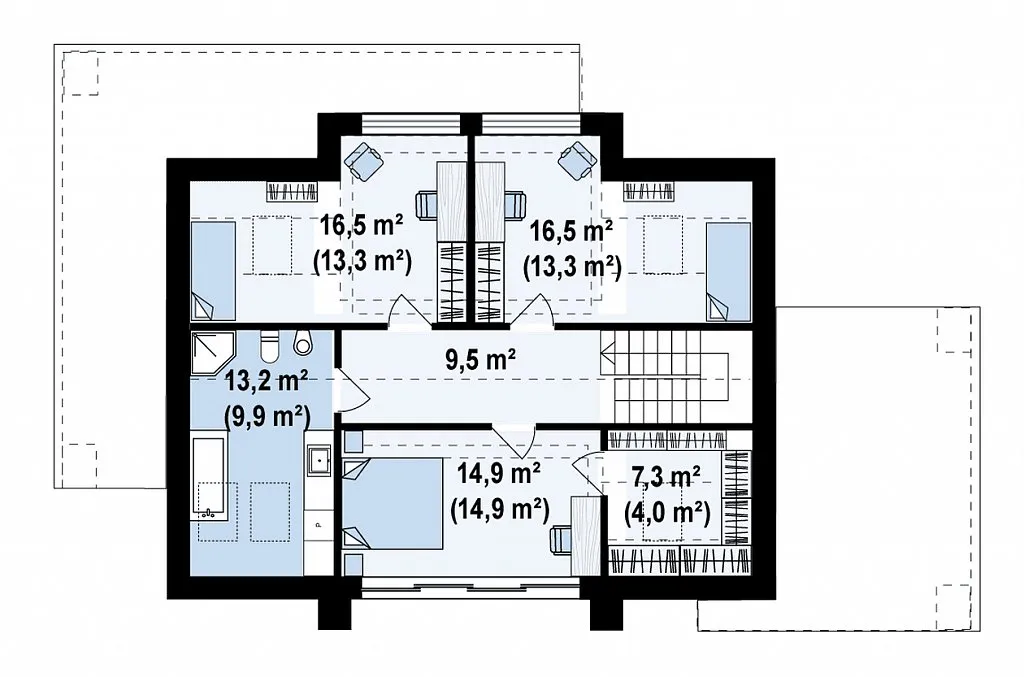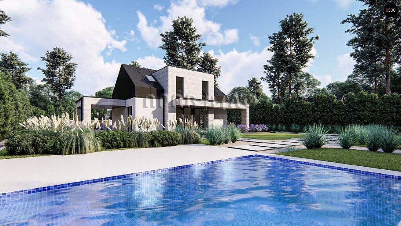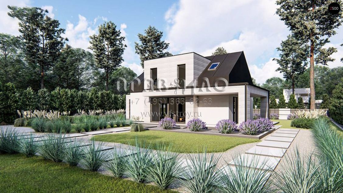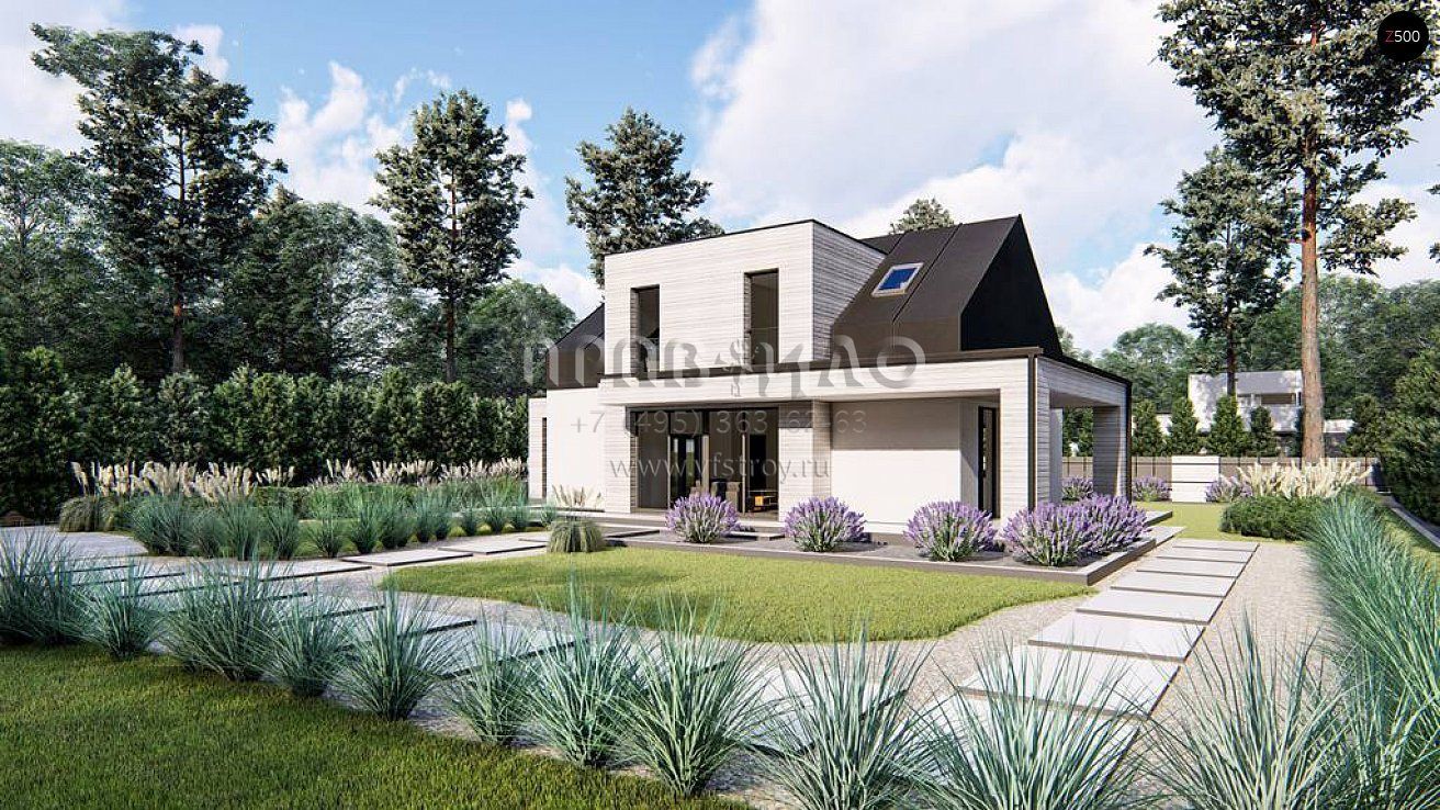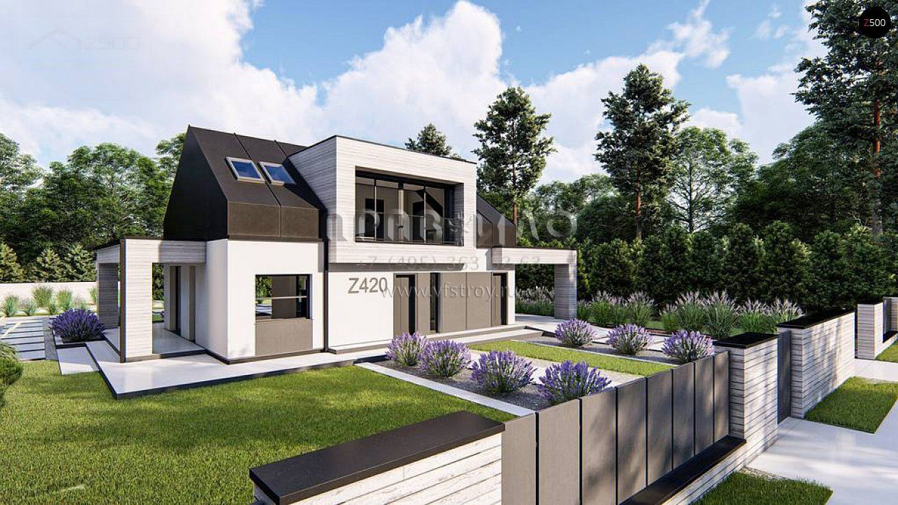 Проект необычного дома с мансардой и навесом для автомобиля S3-163-7 (z420)