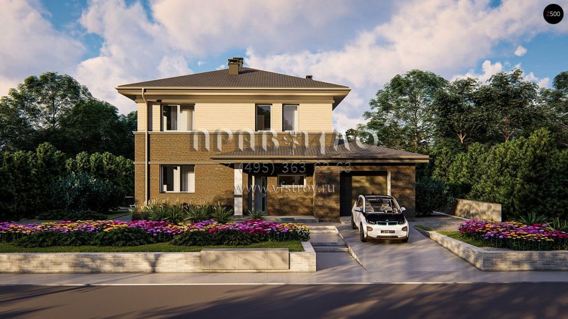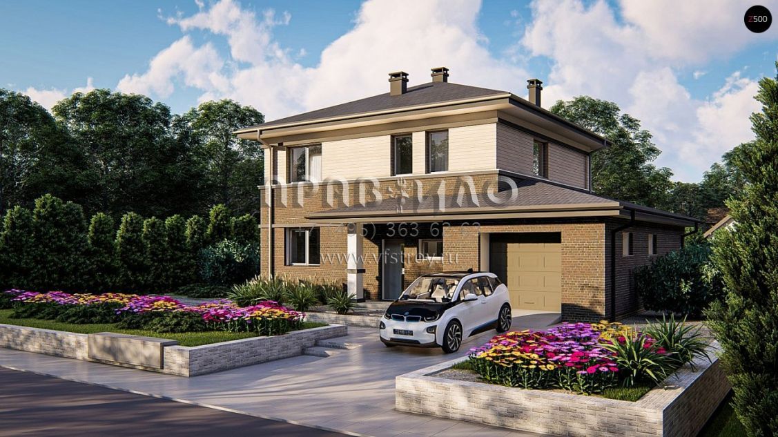 Проект эргономичного двухэтажного дома с четырьмя спальнями и гаражом S3-163-9 (Zz11 k)