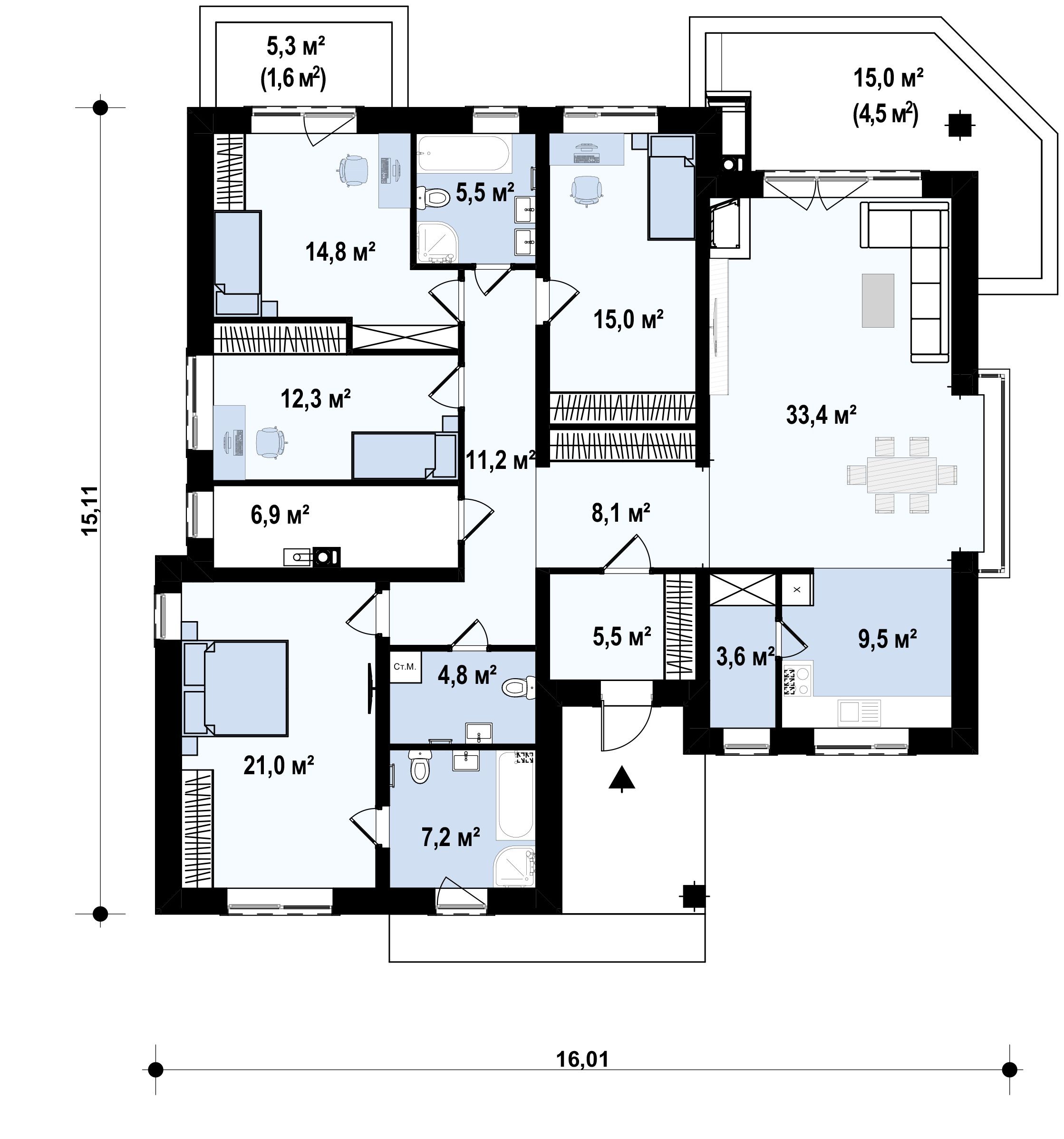 | Общая площадь | 165 м2 |