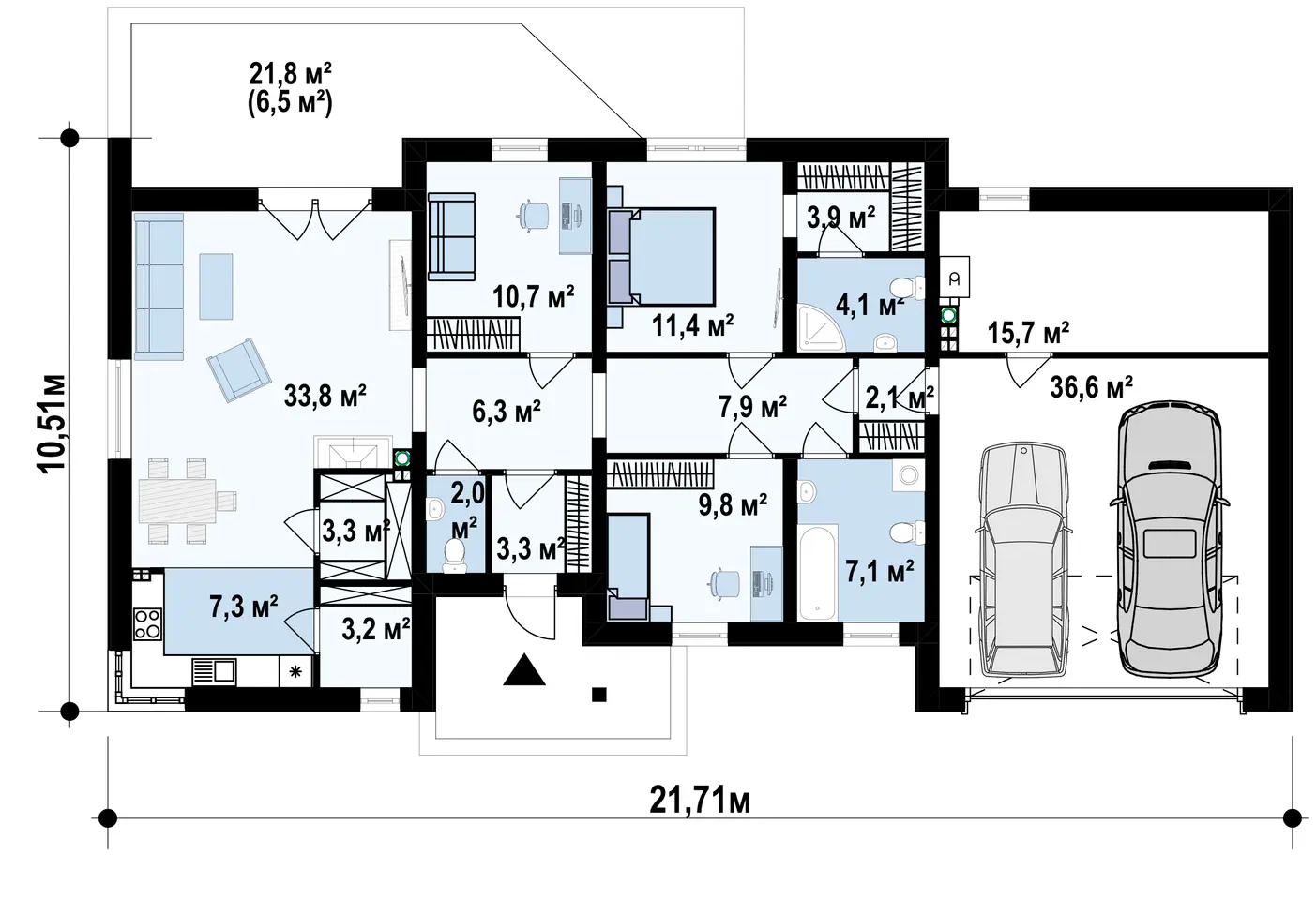 Проект загородного коттеджа для небольшой семьи S3-166-2 (Z167)