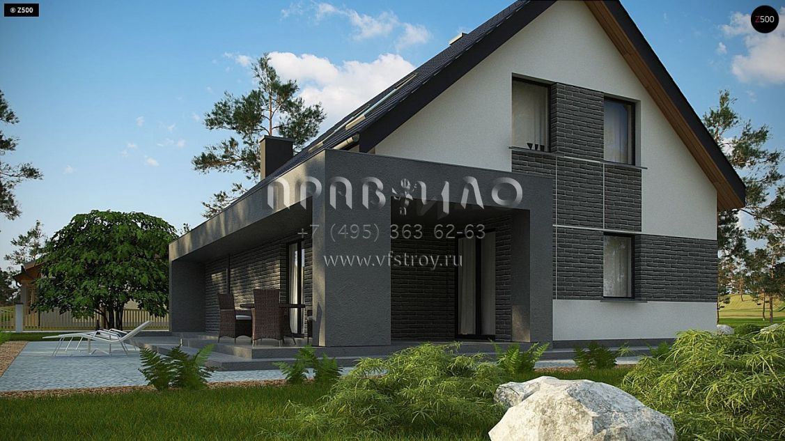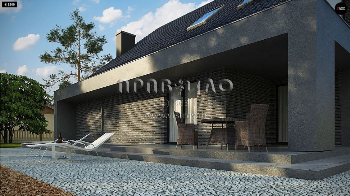 Проект стильного современного одноэтажного дома с гаражом и просторной террасой s3-168-5 (Z347)