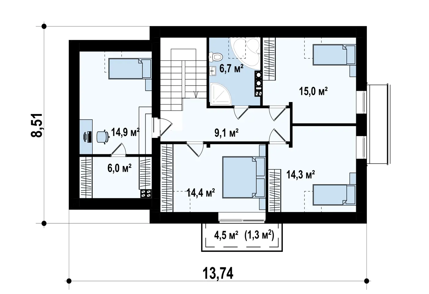 | Возможный материал кровли | металлочерепица, гибкая черепица, керамическая черепица, композитная черепица, цементно-песчаная черепица, фальцевая кровля |
