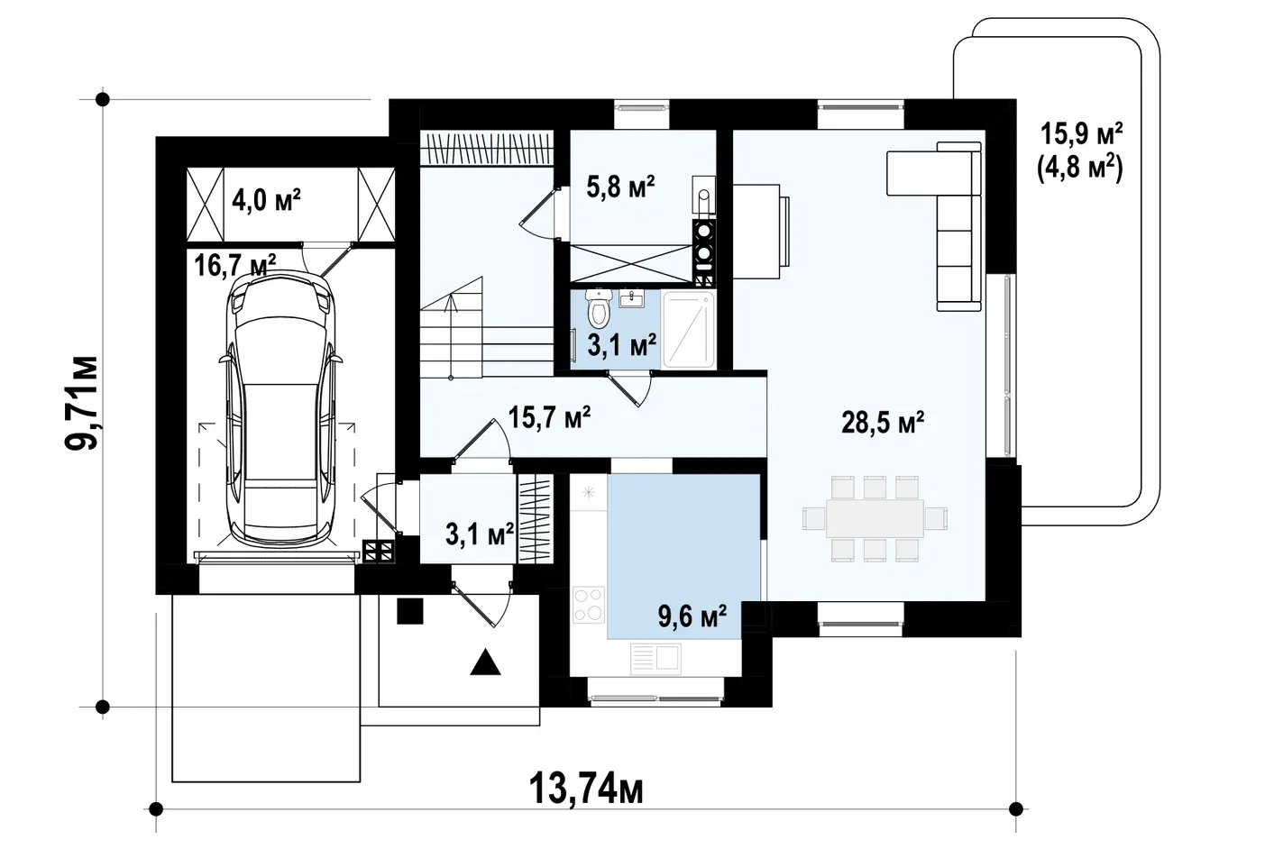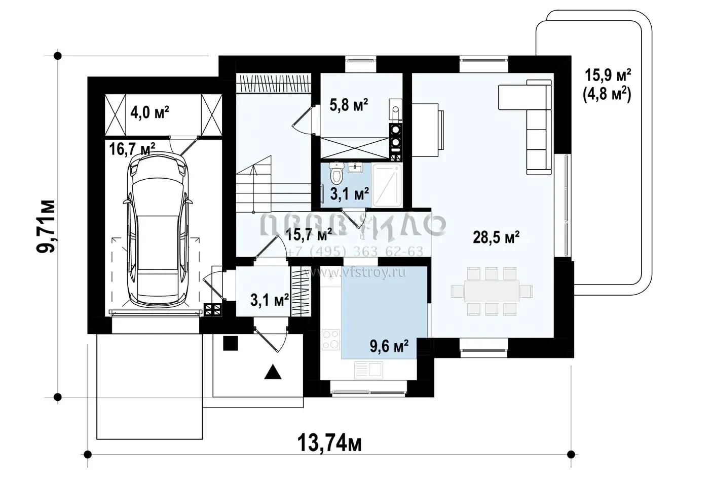 Проект дома с боковым гаражом s3-168 (Z126)