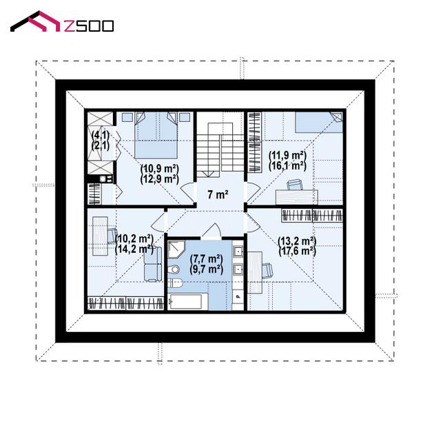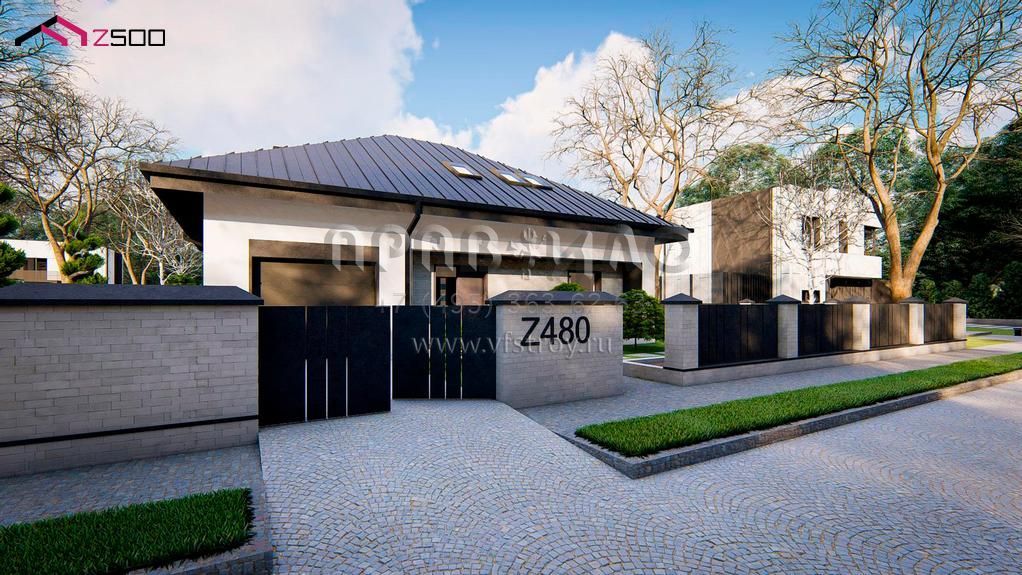Проект современного мансардного дома с камином и гаражом S3-169-12 (z480)