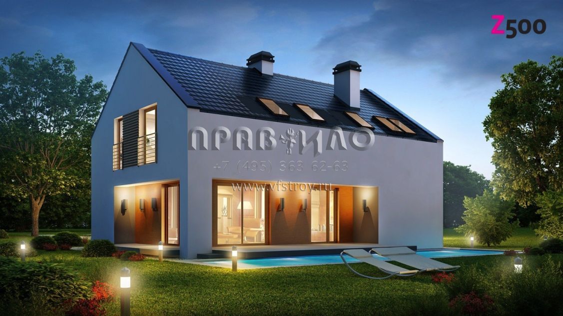 | Возможный материал кровли | металлочерепица, гибкая черепица, керамическая черепица, композитная черепица, цементно-песчаная черепица, фальцевая кровля |