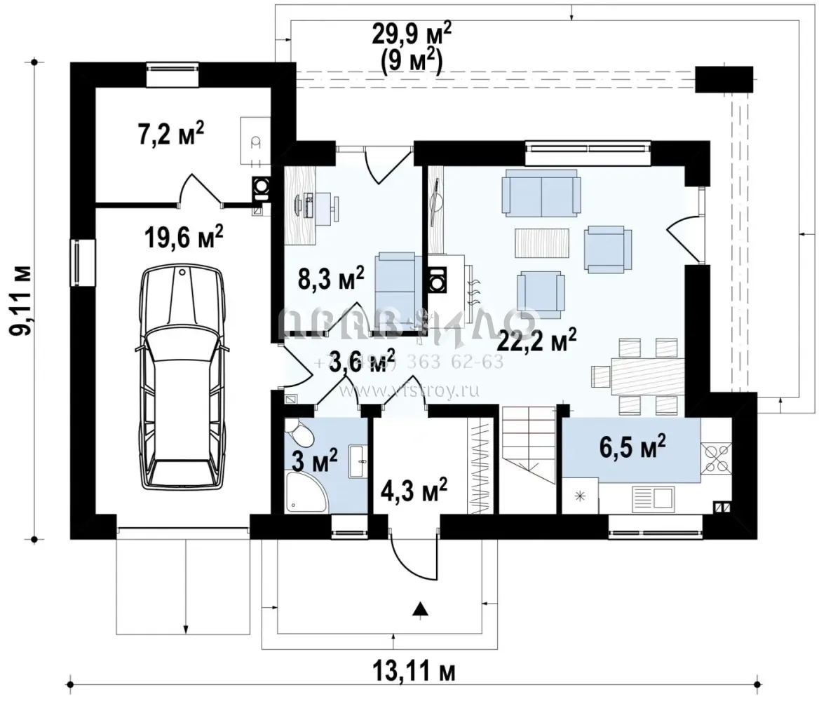 Проект частного дома с двускатной крышей для небольшого участка S3-169-2 (Z222)