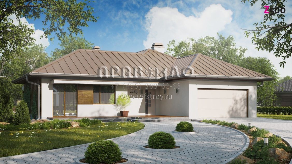 Проект одноэтажного дома с гаражом в классическом стиле S3-169-3 (Z285)