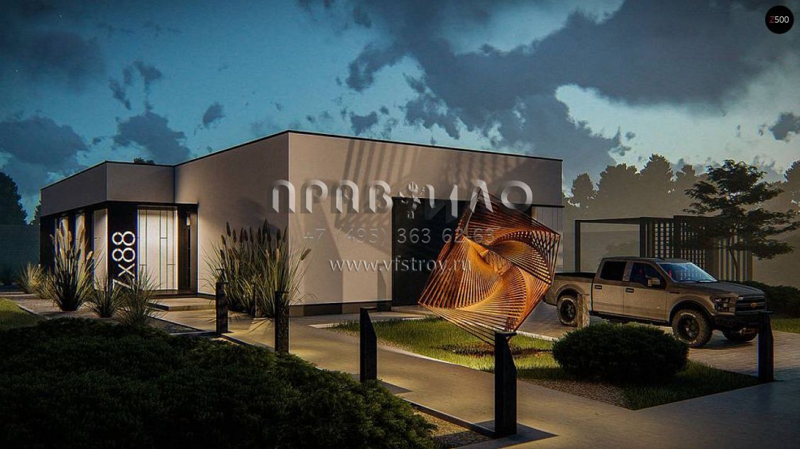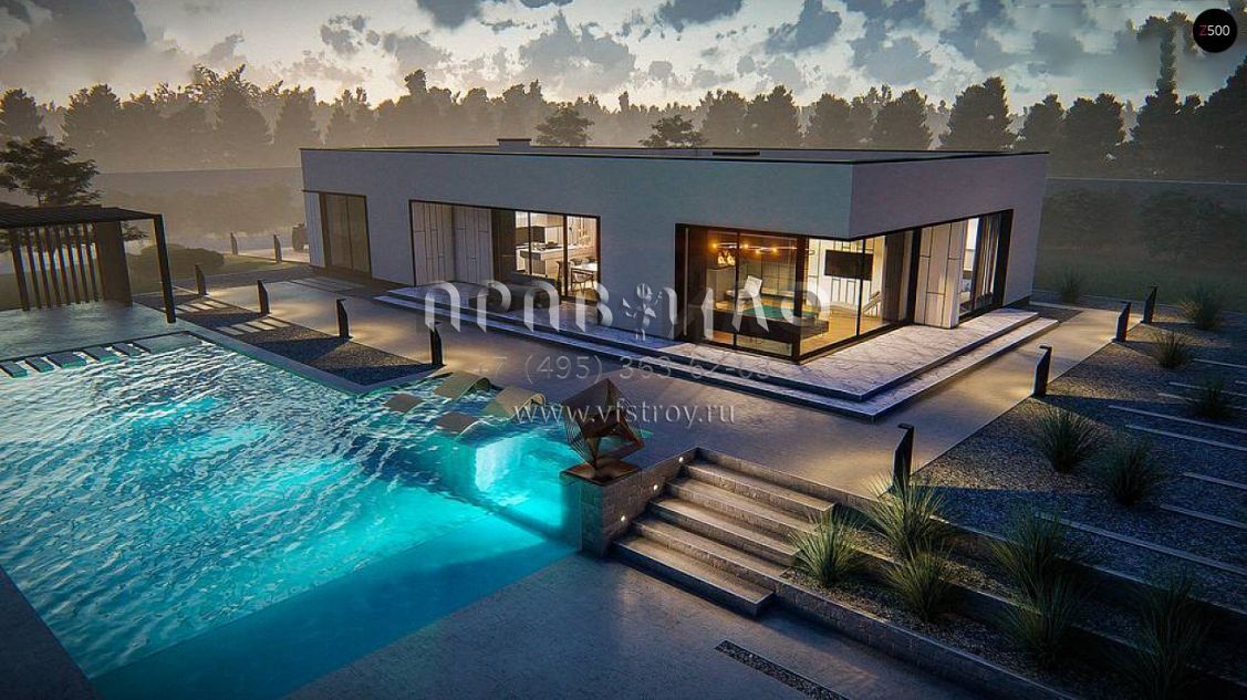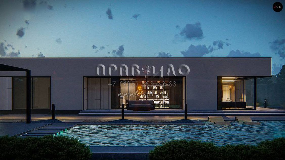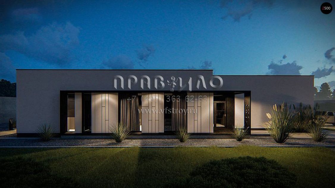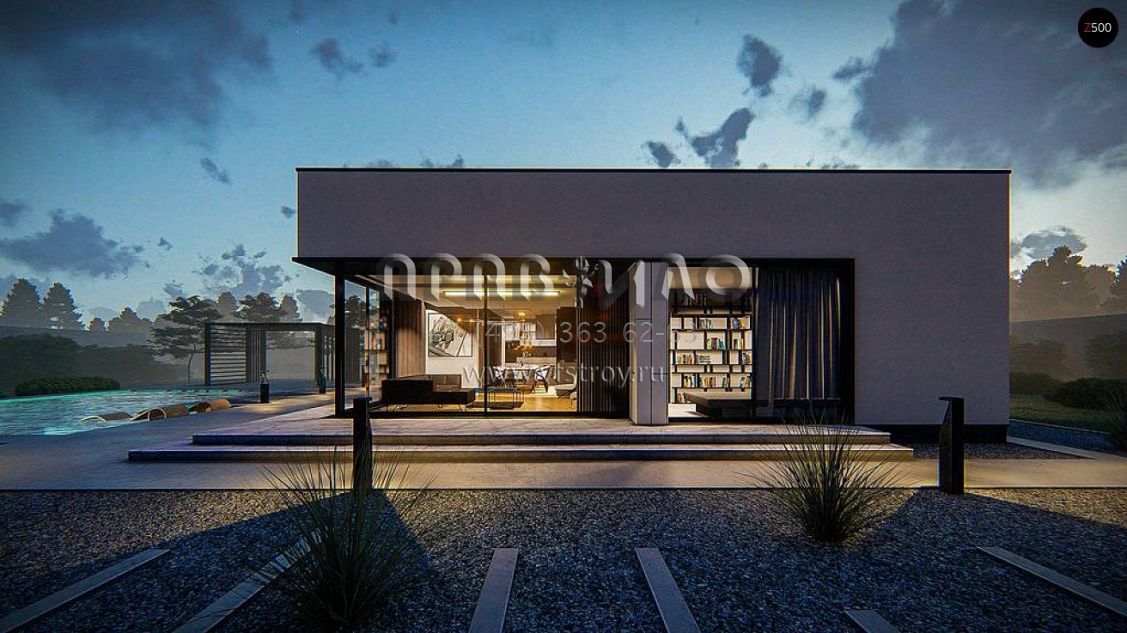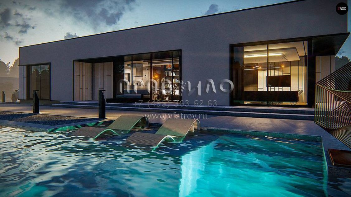 Проект хай-тек дома с обширной гостинно-обеденной зоной с панорамным освещением S3-169-9 (Zx88)